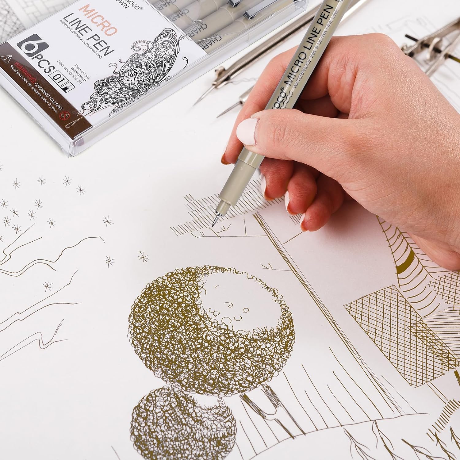 - 【01 Micro Pens】Included in this set are 6 line art pens with 01/0.25mm. These Micro Pens are excellent for sketching, note-taking, hand lettering, and artistic expression. Dive into the world of artistic expression with these versatile micro pens featuring waterproof archival ink.