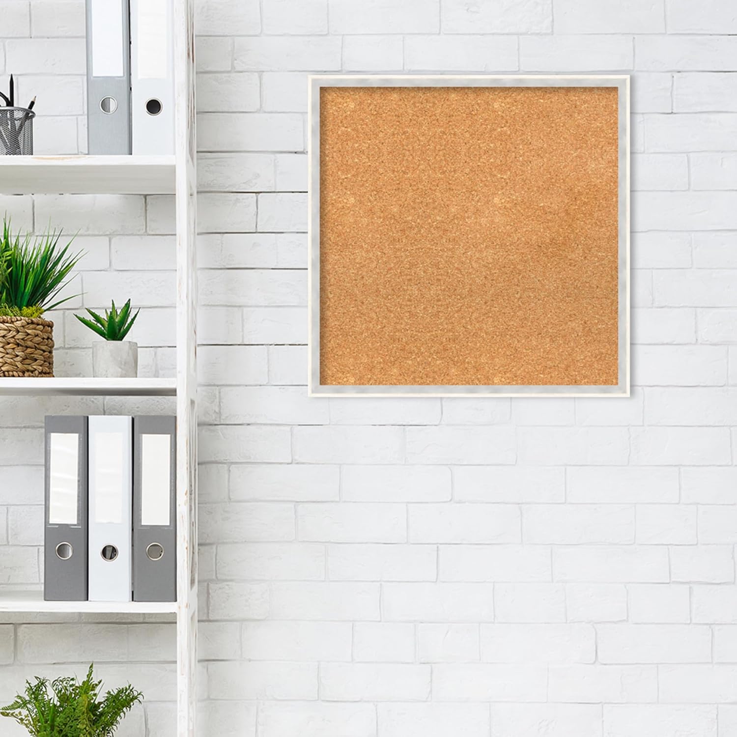 Amanti Art Natural Cork Board for Wall, 21x21 Vision Board with White Frame, Medium Corkboard Office Decor for Home Organization, Modern Corkboard Pinboard to Display Items for Home Organization in