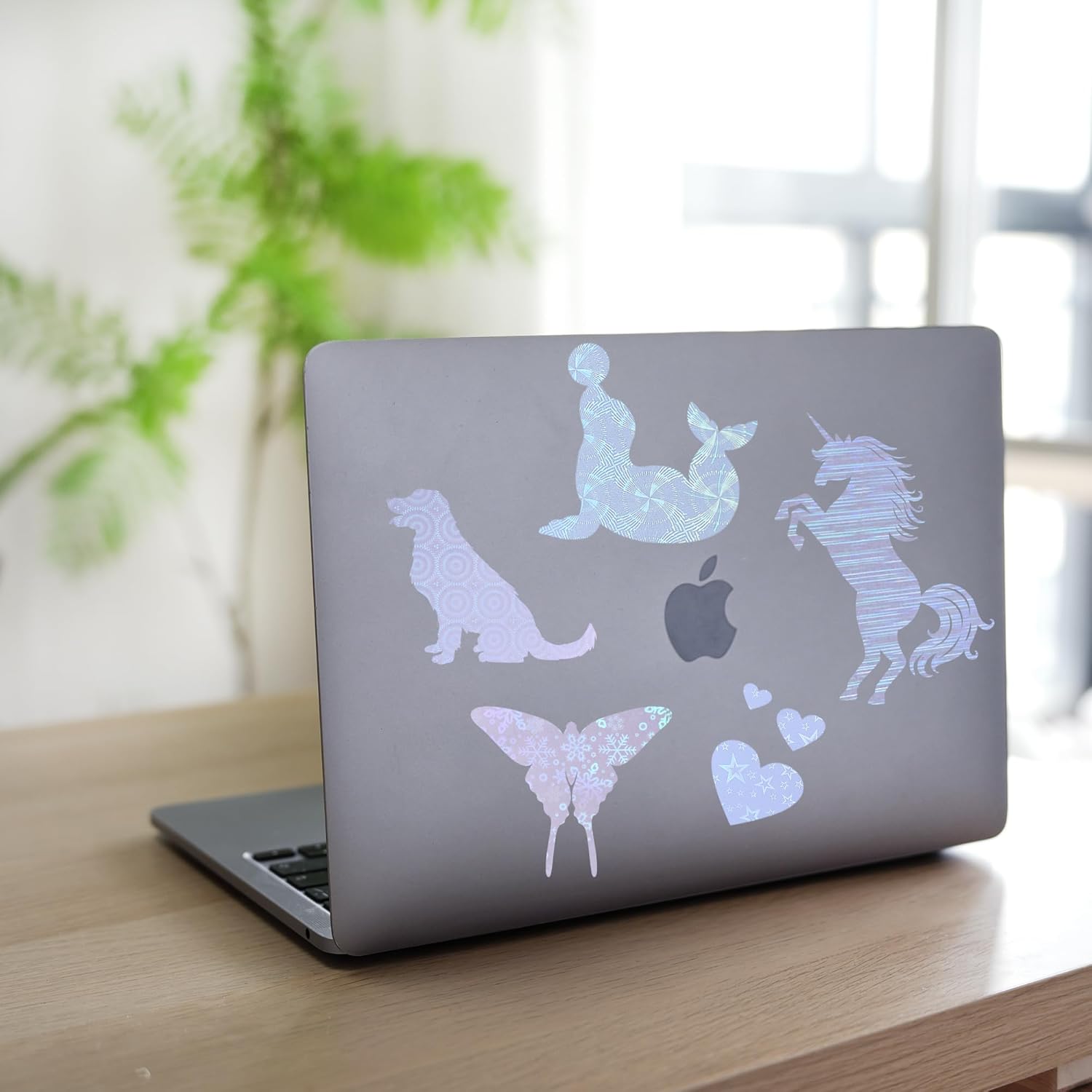 - 🌈【Easy to Apply】The transparent holographic sheets are easy to cut and stick, allowing you to quickly laminate your items with precision. No additional tools required!