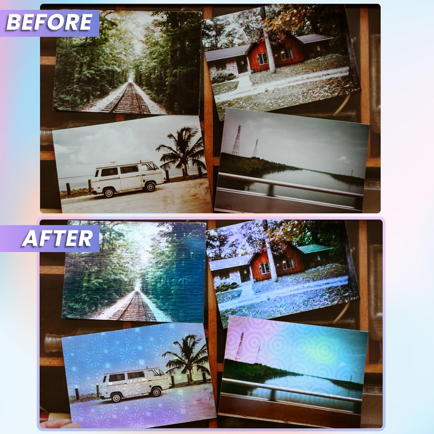 - 🎨【Creative Versatility】Ideal for crafting, scrapbooking, and personalizing stationery. These holographic laminating sheets are perfect for enhancing the appearance and durability of your creations.