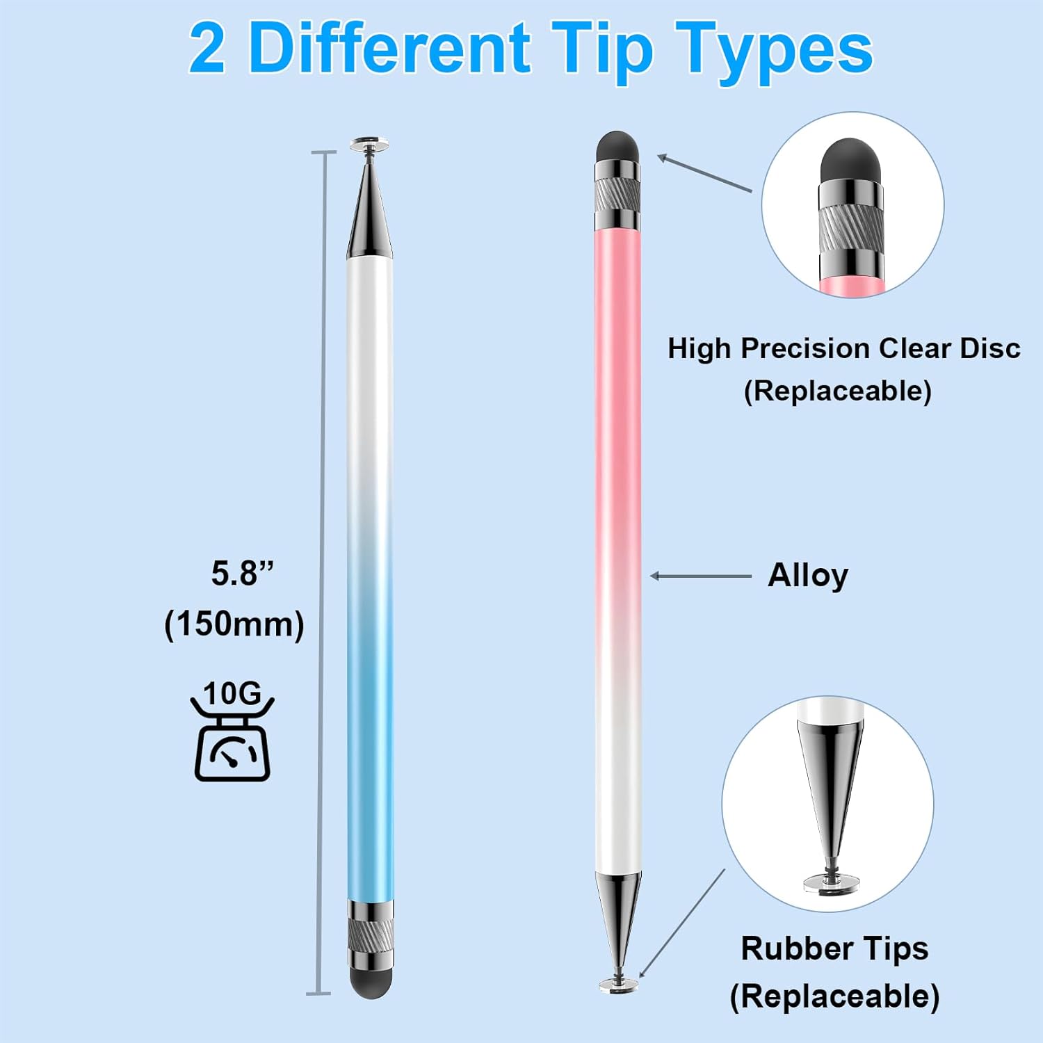 - 【High Accuracy & High Sensitivity】The stylus adopts a flexible transparent disc tip that can flexibly fit on the screen without leaving disconnected lines on your tablet or phone, providing better flexibility and accuracy, Allowing you to see exactly where the mark is and giving an accurate point, while the rubber tip and disc tip can give you two different touch experiences.