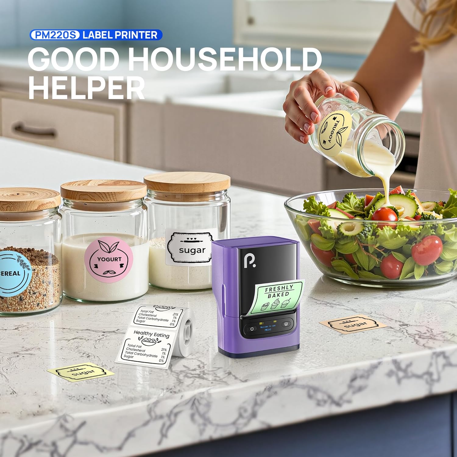 - 【Powerful APP】PM220S label maker machine with tape comes with free label templates and can set up your own templates.The thermal printer allows you to customize and format labels, supporting various features such as QR codes, Barcode Labels, Tables, Materials, Time, Figures,Ttext, Icons, etc. This label printer APP included more than 90 +Fonts, 14+ Languages, 450+ Material