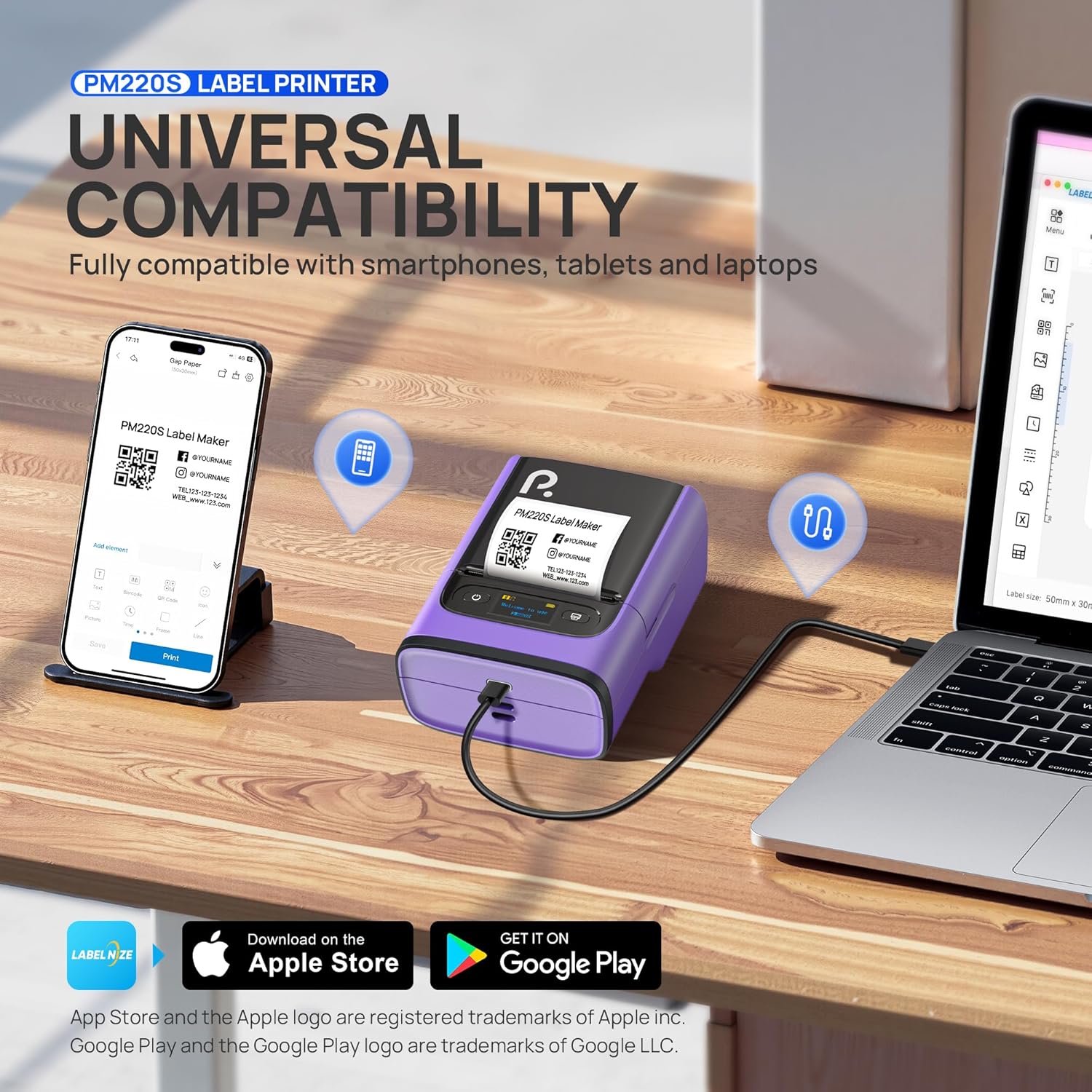 - 【Easy to Use】PM220S Bluetooth Label Maker compatible with iOS & Android and PC. For iOS & Android mobile phone, please download the "Labelnize" APP to Print via Bluethooth. For PC, you need to download the driver and APP, please visit "polono.com" to obtain the PM220S label printer computer driver and APP. Notice: Please DO NOT connect directly via Bluetooth for all devices
