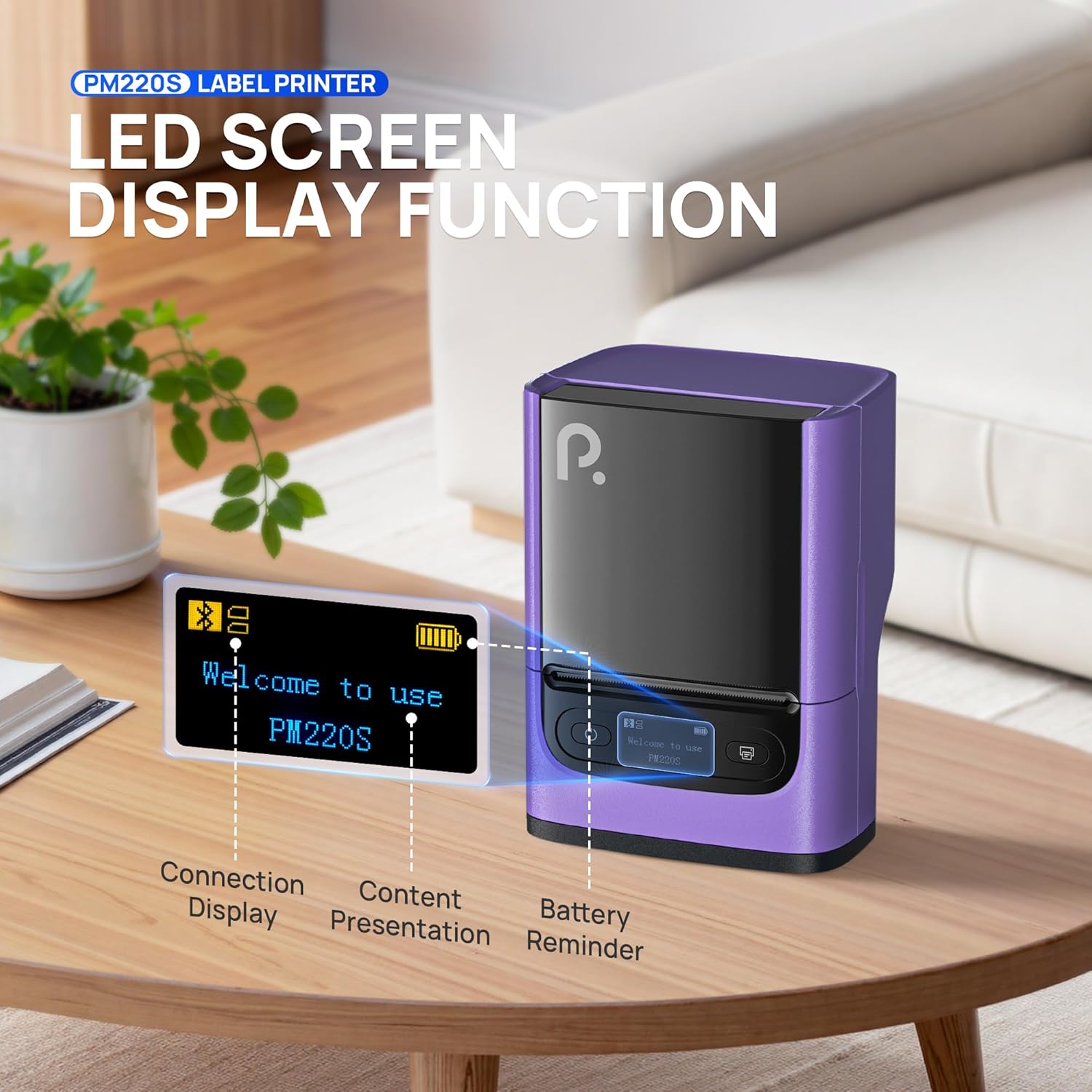 POLONO PM220S Label Maker Machine with Tape, 2 Inch Bluethooth Portable Thermal Label Printer for Small Business, Office, Home, Address, Logo Label, Sticker Printer for Phone/Tablet/PC, Purple