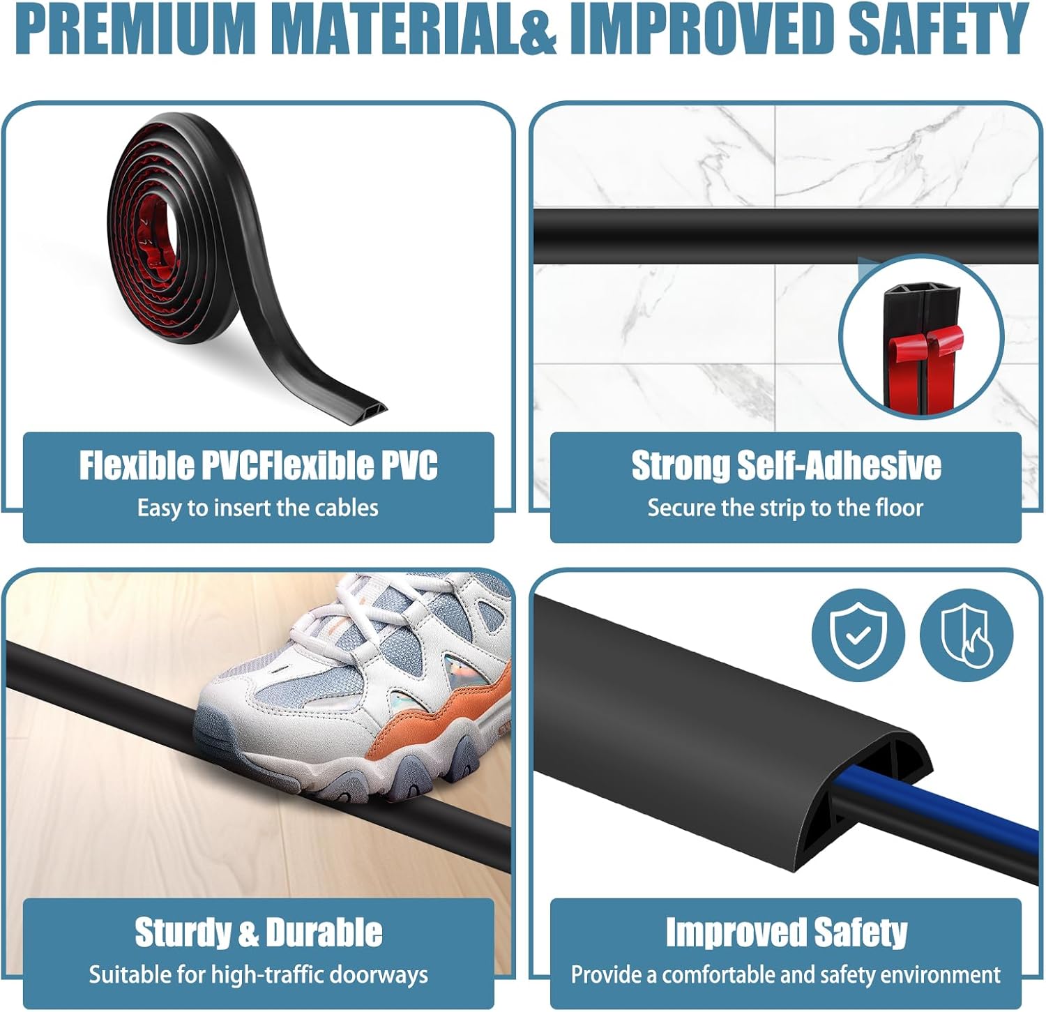 - Comprehensive Protection: Designed to safeguard your cables from being pulled, crushed, or chewed by pets, our cable floor cover significantly extend the lifespan of your wires. They also reduce potential safety hazards, creating a safer environment for both homes and offices.