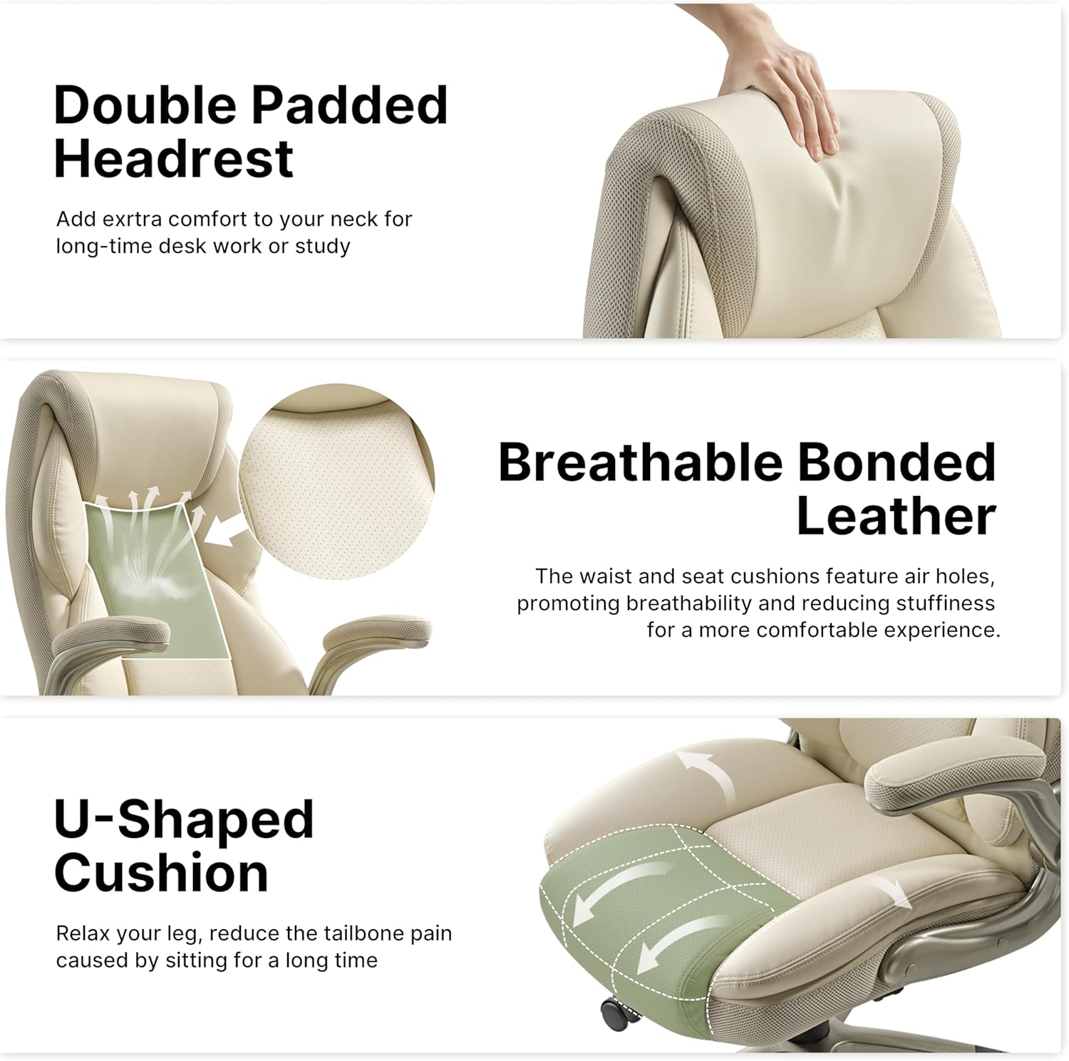- 【Upgraded PU Leather Desk Chair】 Not all leather is created equal. This PU leather used in our specially customized beige executive desk chair is different from beige office chair leather. It is more breathable, more durable, and easier to clean. Our big and tall office chair combine superior comfort and aesthetics, making them the perfect gift choice for yourself or someone you care about.