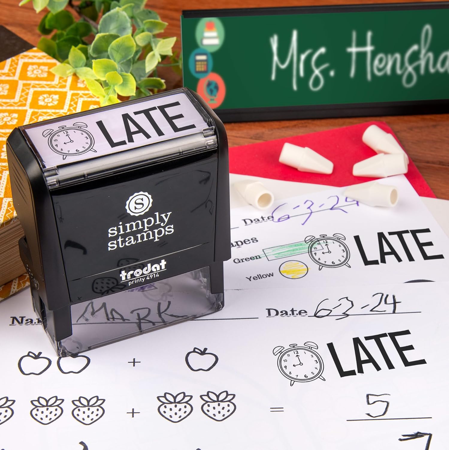 Custom Self-Inking Stamps | 49 Fun Phrases | Grading Made Easy | Classroom & Library Book Stamps (Late, Xtra Large)