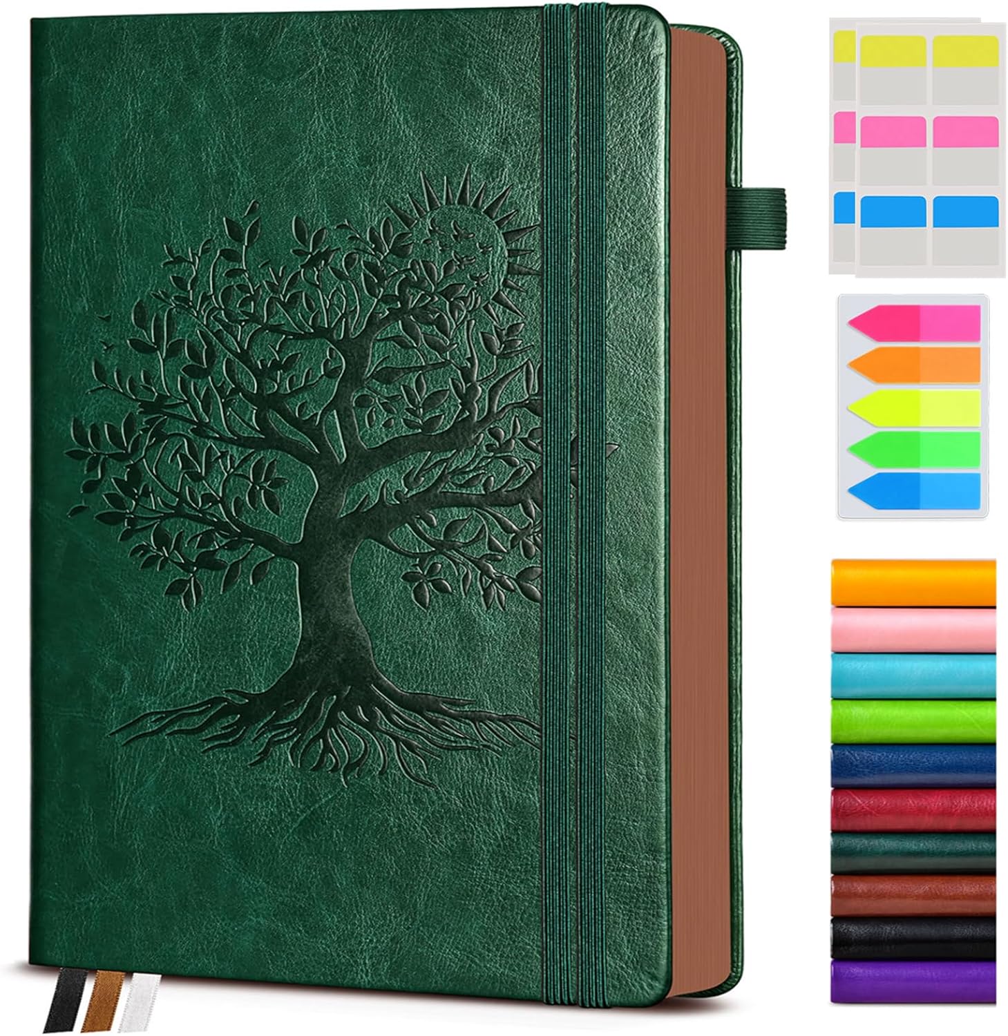 - 【BUILT-IN FEATURES FOR CONVENIENCE】This journal notebook comes with several useful features.The 1 built-in back pocket is ideal for storing loose papers or small items. The 1 elastic pen holder keeps your pen handy at all times.The 2 elastic closures ensure that the notebook stays securely closed.Additionally, the 3 colored ribbon bookmarks help you easily find your place.And the 3 free sticky tabs are great for marking important sections.