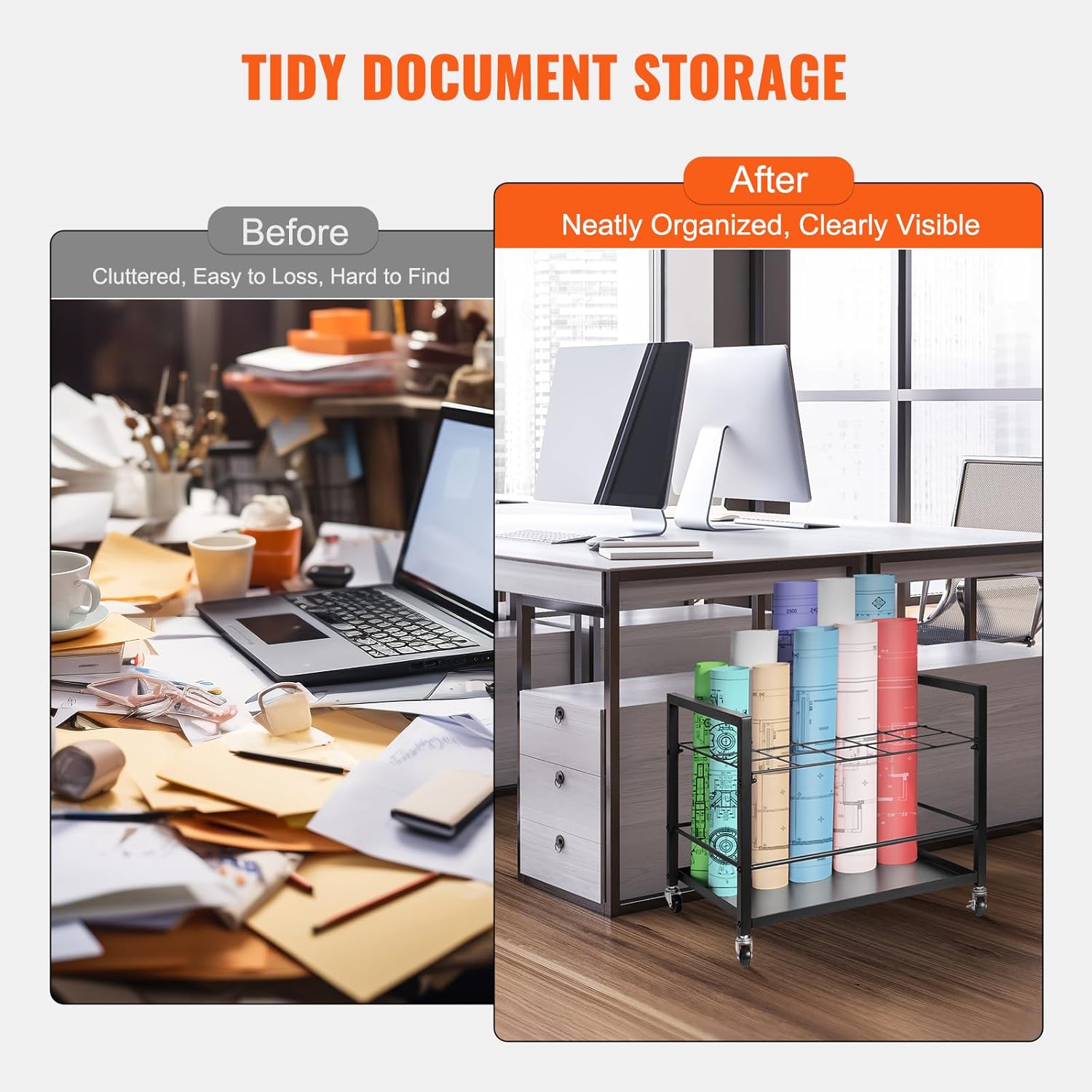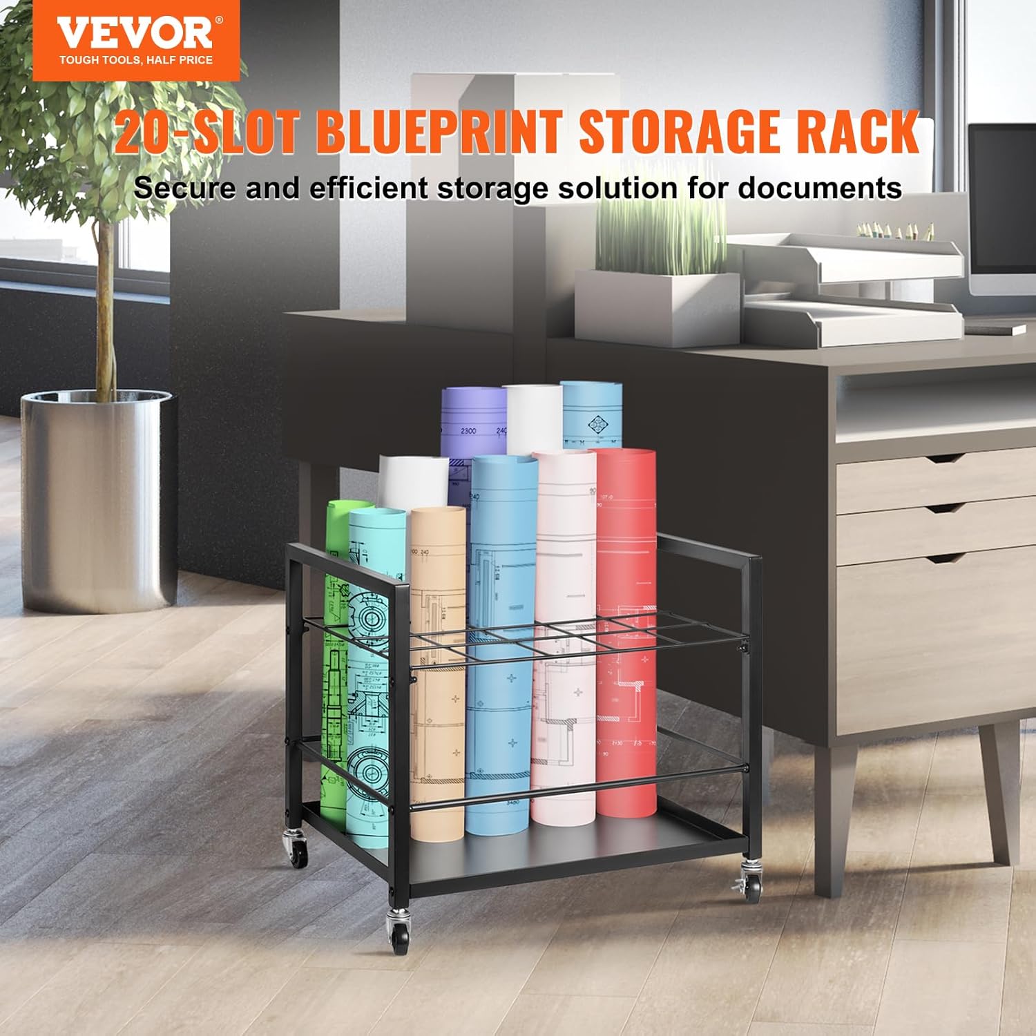 VEVOR Blueprint Storage Rack, 20 Slots Blueprint Holder with Wheels, Mobile Metal Blueprint Storage Cart for Map Poster Architectural Construction Plan, Roll File Organizer for Home, Office, School
