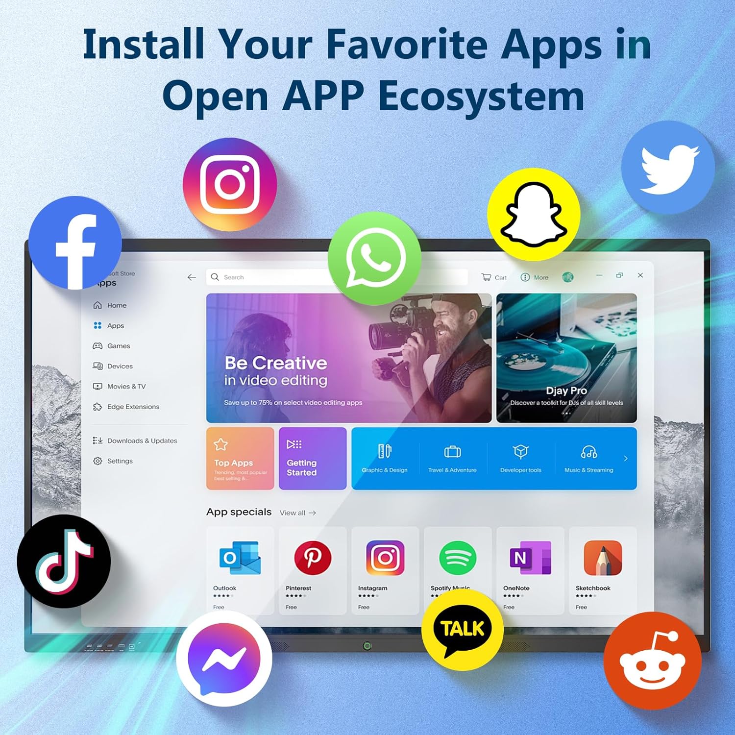 - 【Robust App Ecosystem】: Smart boards offer a robust app ecosystem with a variety of educational and productivity apps that enhance teaching, learning, and presentation capabilities, providing users with a versatile and customized experience. allow you to download the apps you need.