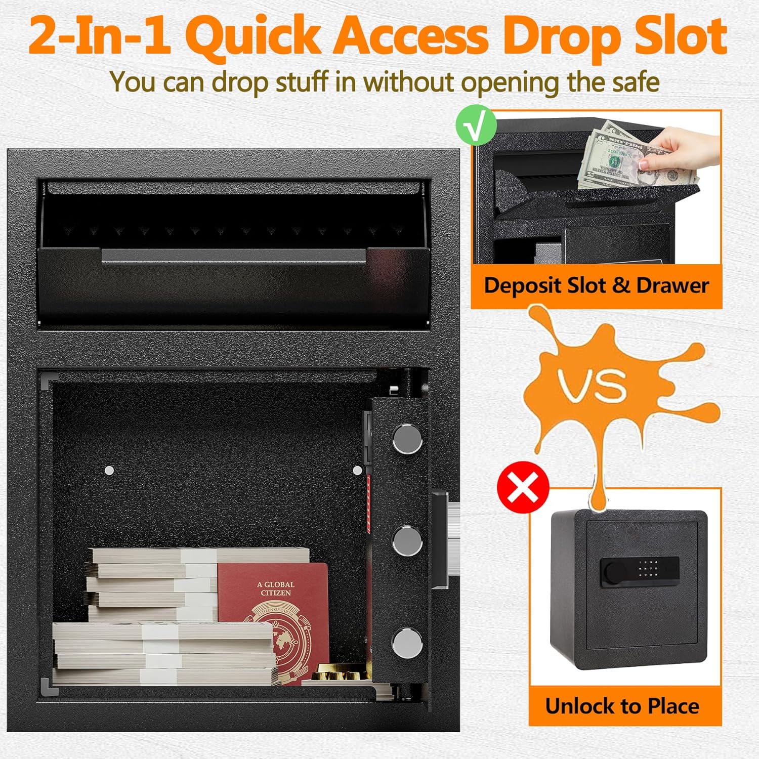 1.8 CUB Depository Drop Safe Fireproof, Front Drop Slot Lock Box with Digital Combination and Anti-Fishing, Silent Deposit Safe Box, Security Money Safe for Cash Slips Expense Business Office Home