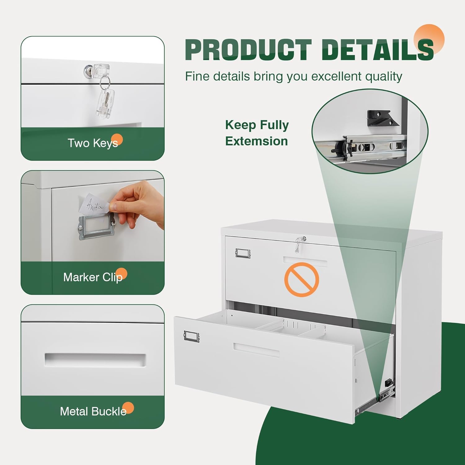 Letaya 2 Drawer Metal Filing Organization Office Cabinets with Lock,Lateral File Cabinets for Home Office Hanging Files Letter/Legal/F4/A4 Size (2 Drawer-White)