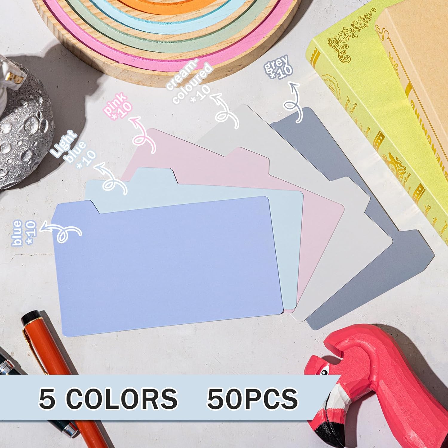 - Sufficient Quantity: the package includes 50 pieces of card dividers in 5 colors, 10 pieces in per color, alongside 2 alphabet stickers of letters and numbers, sufficing for daily use and also providing the option to share with colleagues and classmates