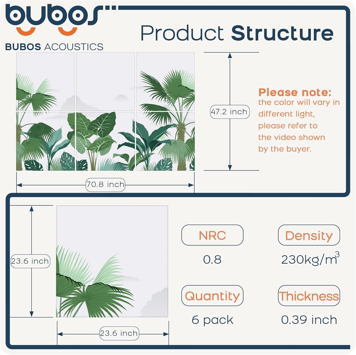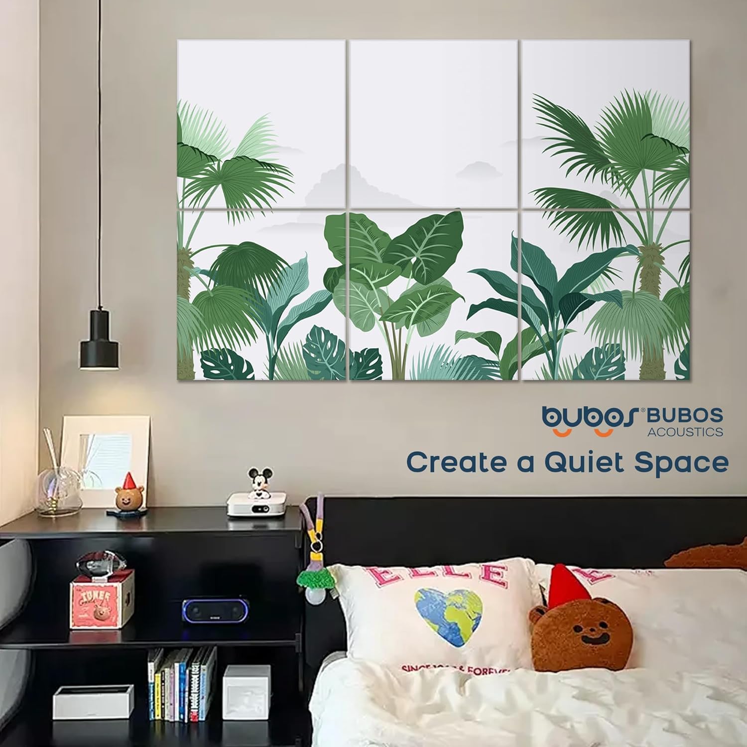 BUBOS 6 Pack Art Acoustic Panels Soundproof Wall Panel,70.8X47.2 Inches Large Sound Absorbing Panel,Self-adhesive Decorative Acoustical Wall Panels, Acoustic Treatment for Home Officeļ¼Green Leavesļ¼