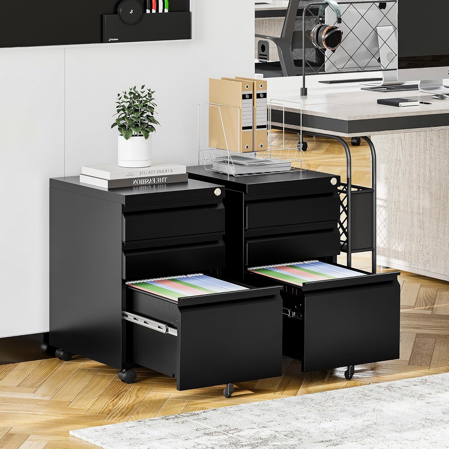 - ✅➤【FULL-EXTENSION DRAWER LOCKING FILE CABINET】: The full extension drawer glides are ball-bearing-supported and glide smoothly and seamlessly. The drawers can pulled all the way out to access all files. All drawers can be open and close quietly and easily,ensuring a pleasant and efficient filing experience.