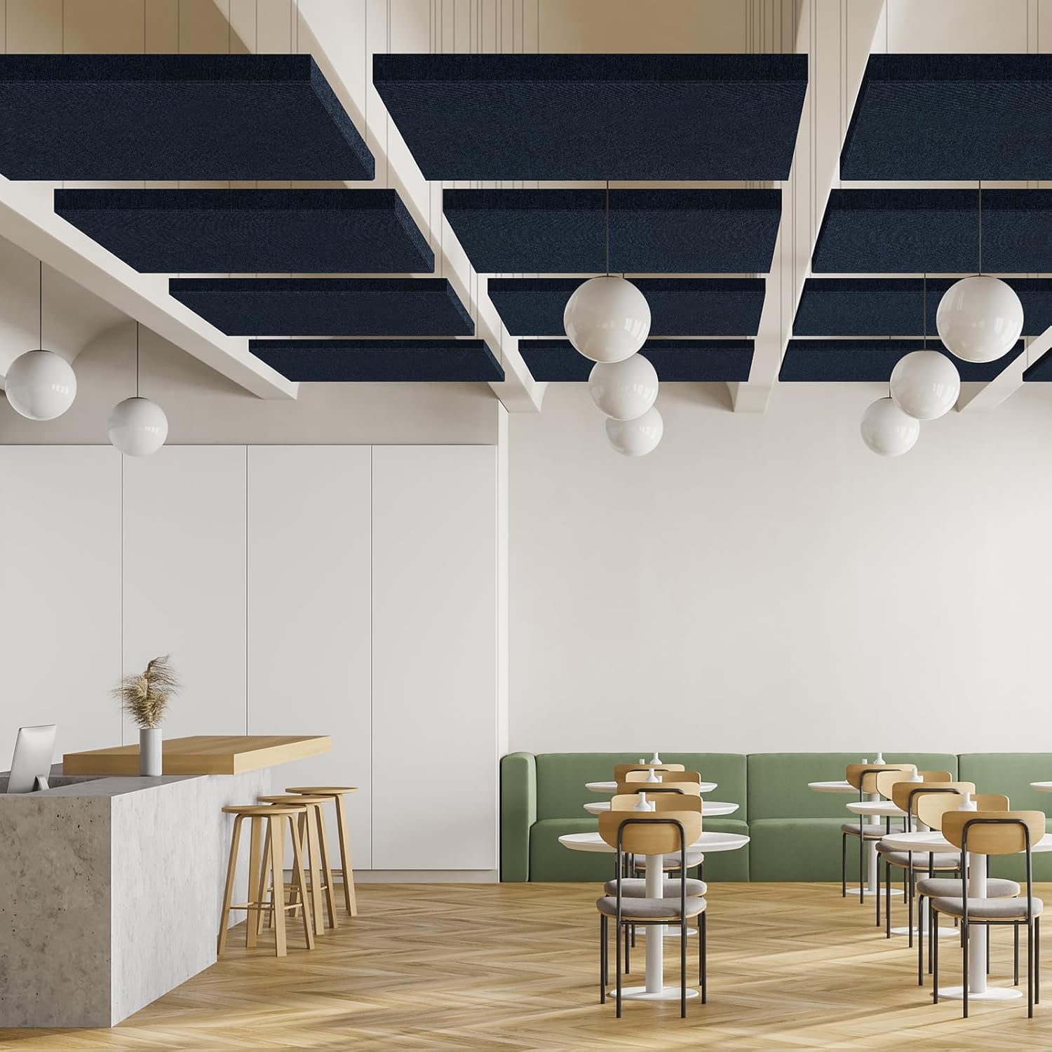 UMIACOUSTICS 4 PCS Acoustic Panels with Hanging Hardware, 2” Thick Fiberglass Sound Proof Panels for Studios, Office, Home Theater Ceiling or Wall- Navy Blue