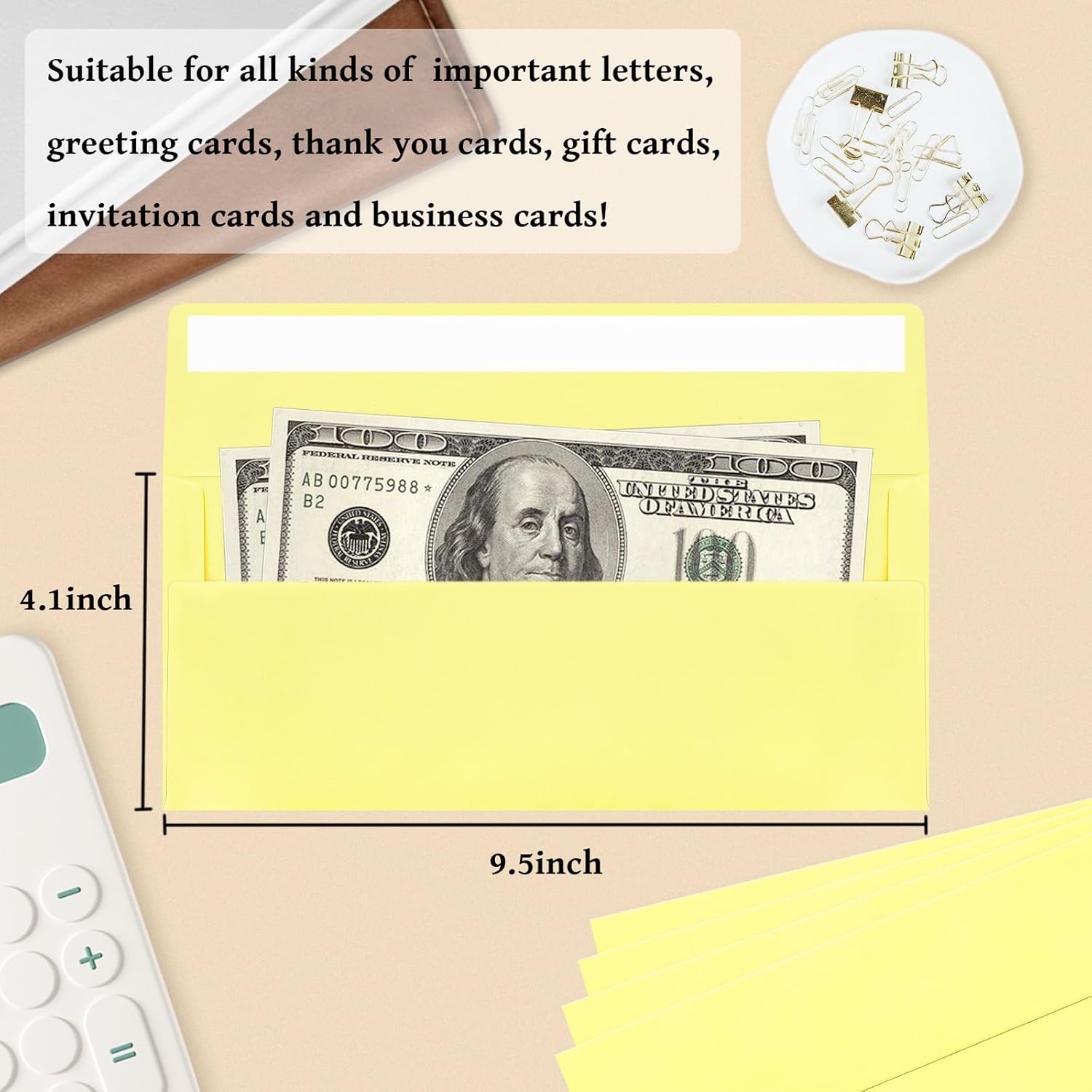 - 【Light Yellow #10 Business Envelopes】These #10 business envelopes feature a light yellow color. The envelopes kit contains 50 pieces 4 1/8 x 9 1/2 Inches light yellow envelopes, perfect for your office or home purposes