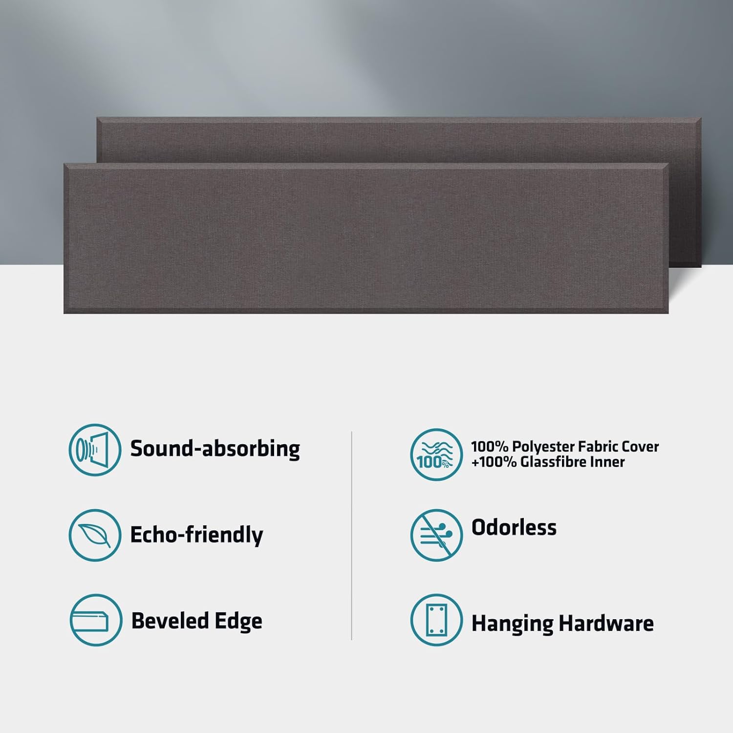 - 【Material】- 2” Thick Panel , 100% Polyester high density fabric wrapped ,and 100% white fiberglass inner , it has more advantage than yellow fiberglass and polyester inner panel on sound proof and environmental.