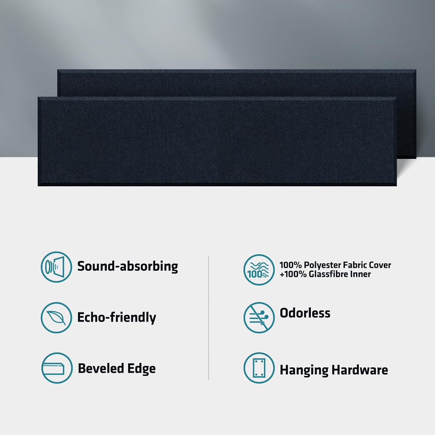 2” Thick Acoustic Panels with Hanging Brackets to the Wall, 2 PCS 47.2” x 11.8” Fiberglass Sound Absorbing Panels for Home Theater Church Office Wall or Ceiling, Navy Blue