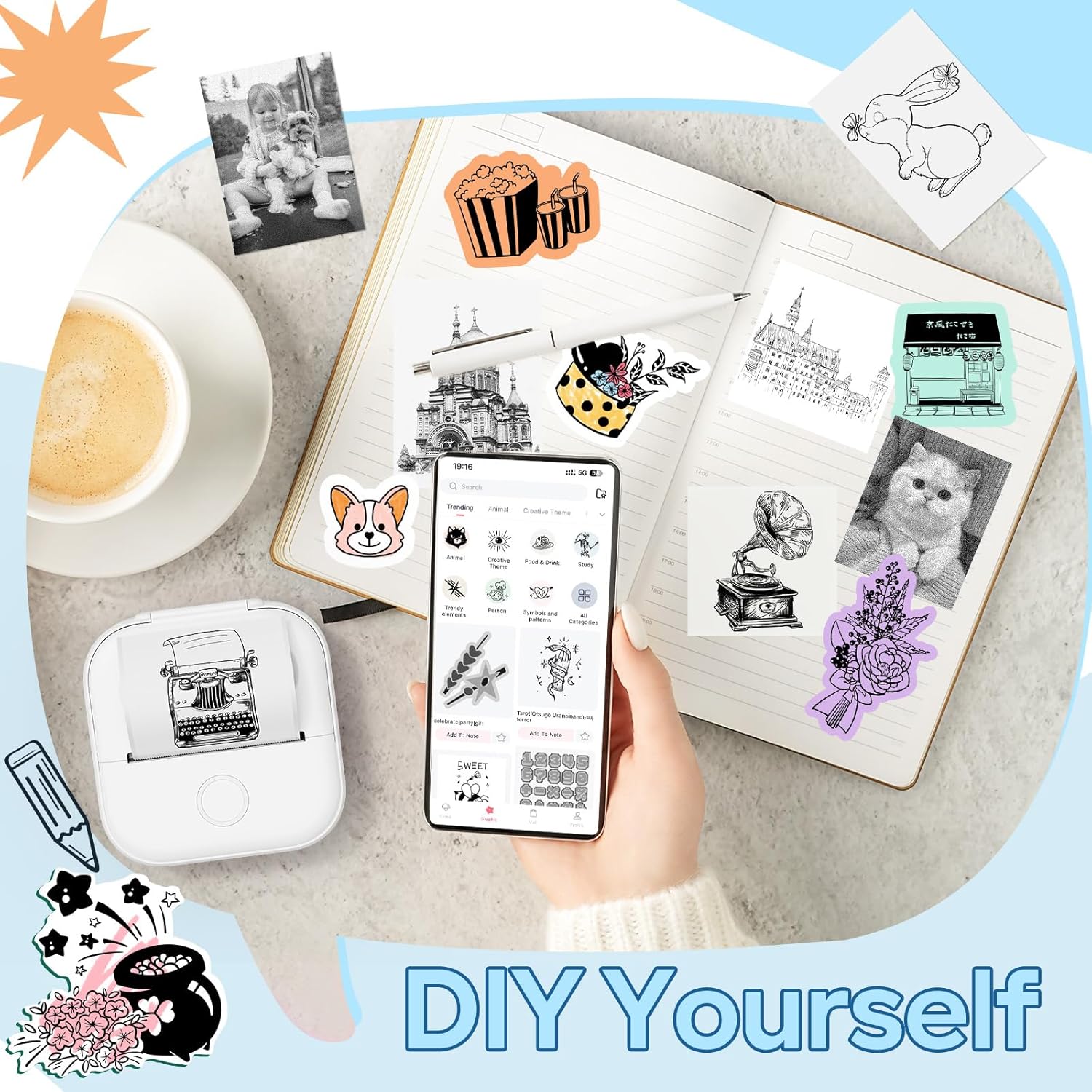 - Multi-functional thermal mini printer: The Y02C sticky note printer is suitable for use in the office, DIY projects, home, and study. In the workplace, it can be used for to-do lists, memos, addresses, receipts, and in daily life, it can be used for bookmarks, greeting cards, label recognition, coloring, letter learning, and card recognition, among other purposes