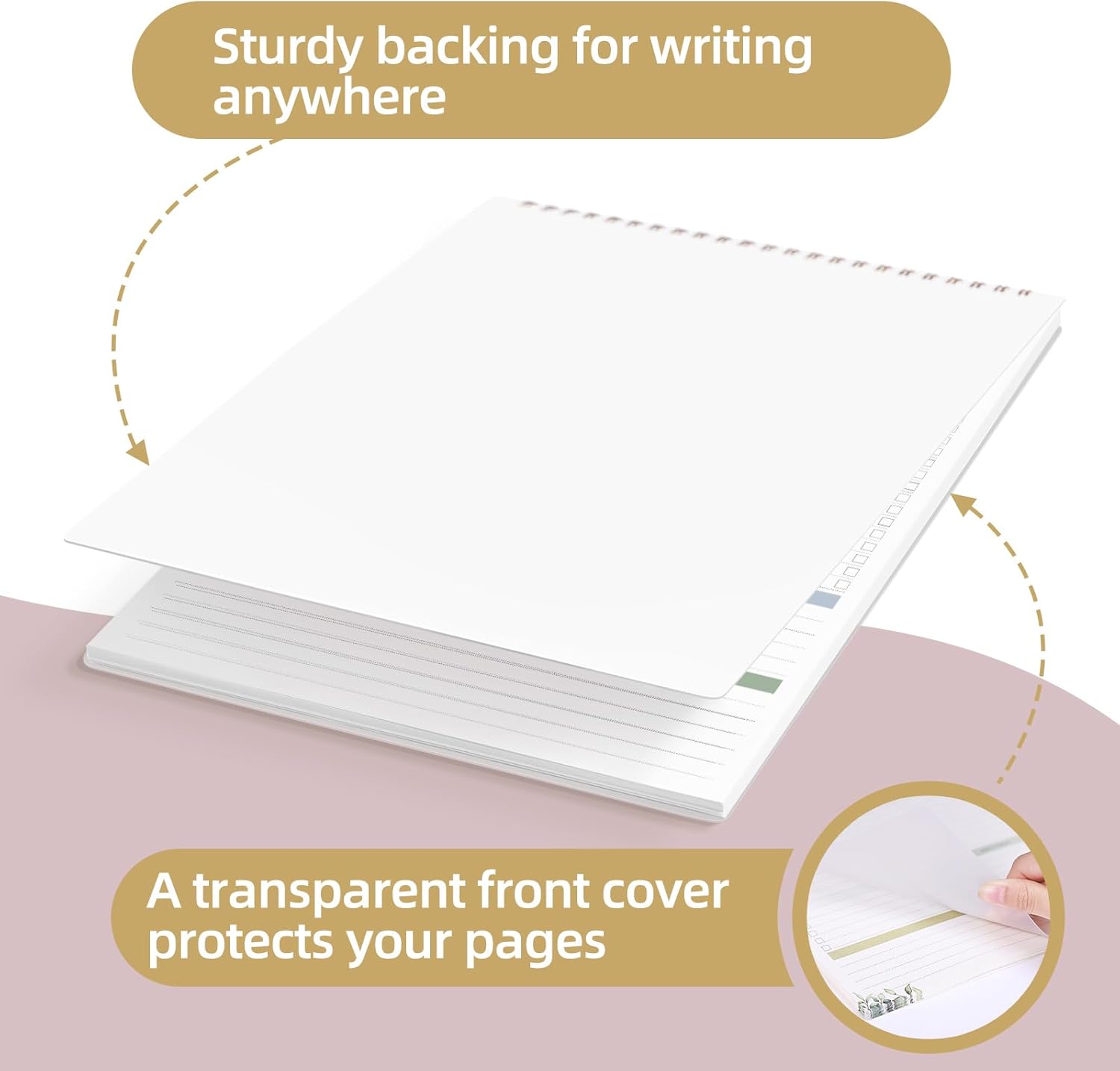 - 【High Quality】The weekly to do list pad is made with premium non-bleed 100 GSM paper to give you the perfect writing experience. Twin-Wire Spiral Bound on the top makes it easy to flip or tear off pages and no need to worry about falling apart. Clear Waterproof PP Cover helps you easy to read while protecting the inner pages from damage. Thick back cardboard for flat writing, protect large weekly planner for full-year use.