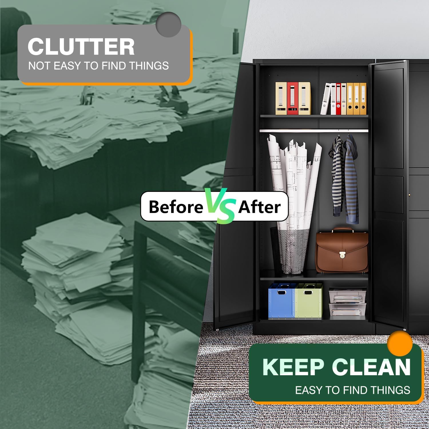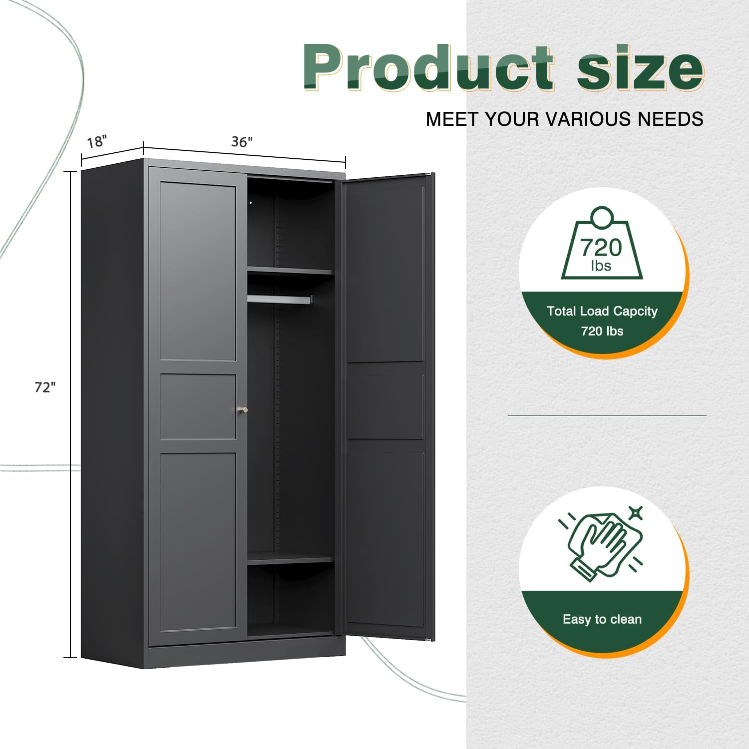 Letaya Wardrobe Armoire Closet,72" H Metal Storage Cabinet with Adjustable Shelves and Hanging Rod,Bedroom Armoire Cabinet Clothes Organizer (Black)