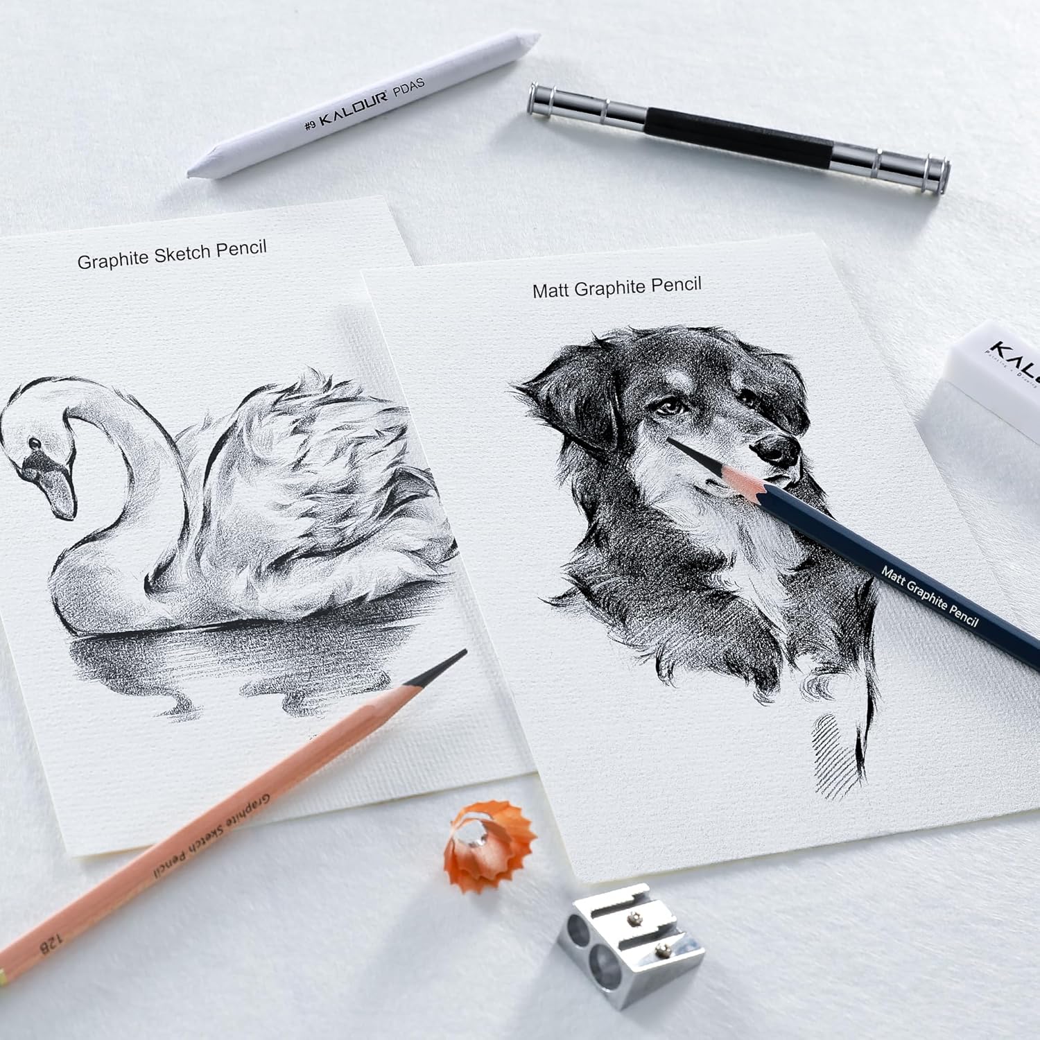 KALOUR 25-Piece Professional Sketch Pencil Set with Matte and Regular Pencils - Includes Vinyl Eraser, Kneaded Eraser, Sharpener, Pencil Extender and Blending Stump - Ideal for Artists and Beginners