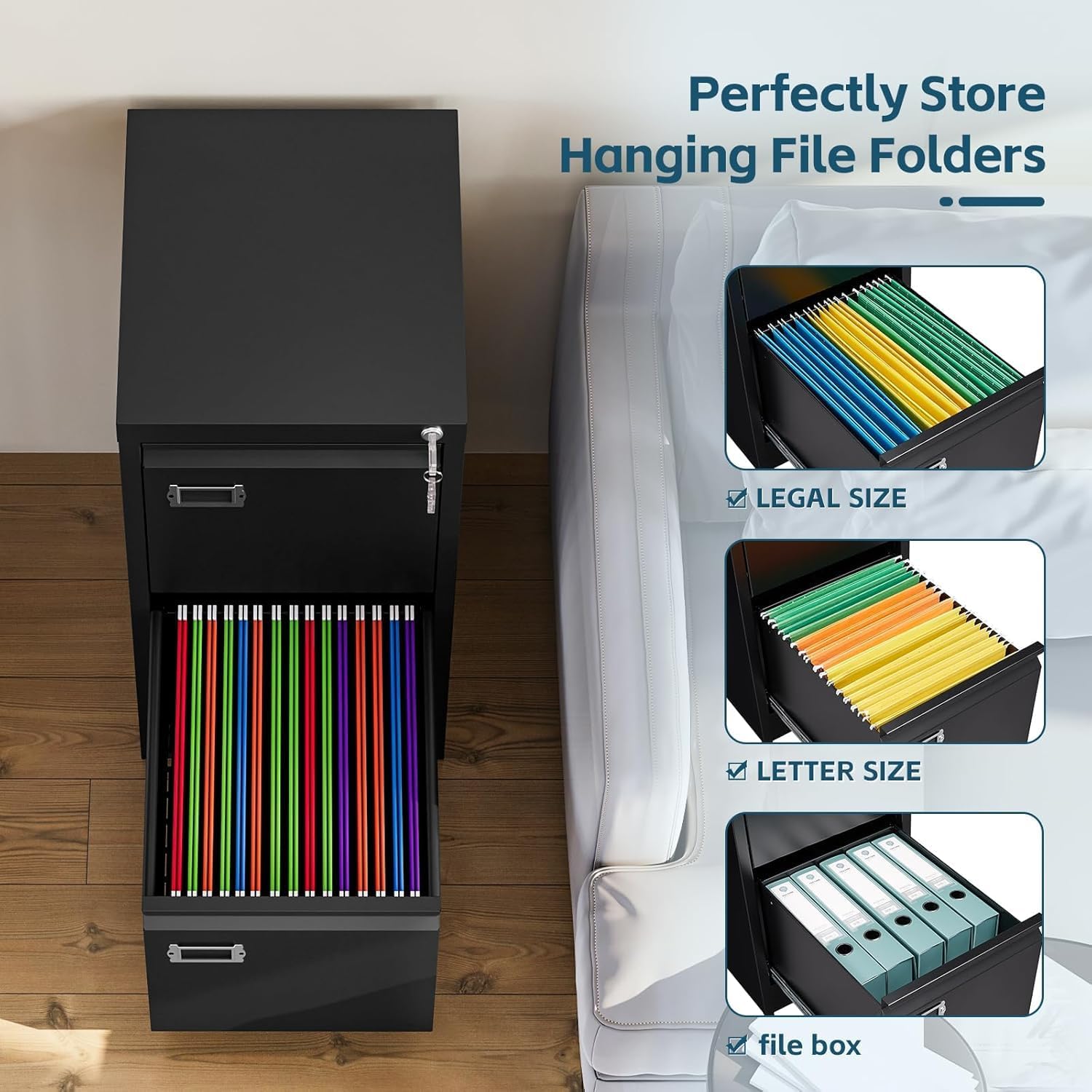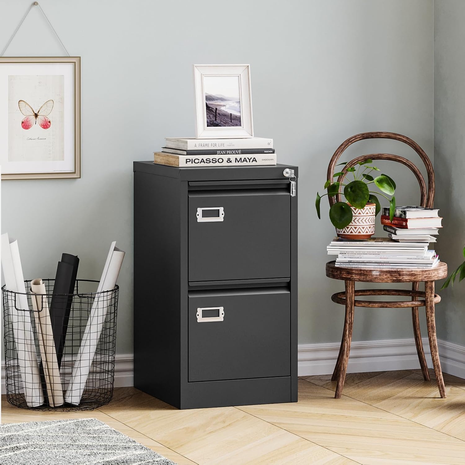 MIIIKO 2 Drawer Filing Cabinet with Lock, Metal Vertical File Cabinets for Home Office, Lockable File Storage Cabinets Under Desk, Letter/A4 File Folders Storage(Assembly Required)