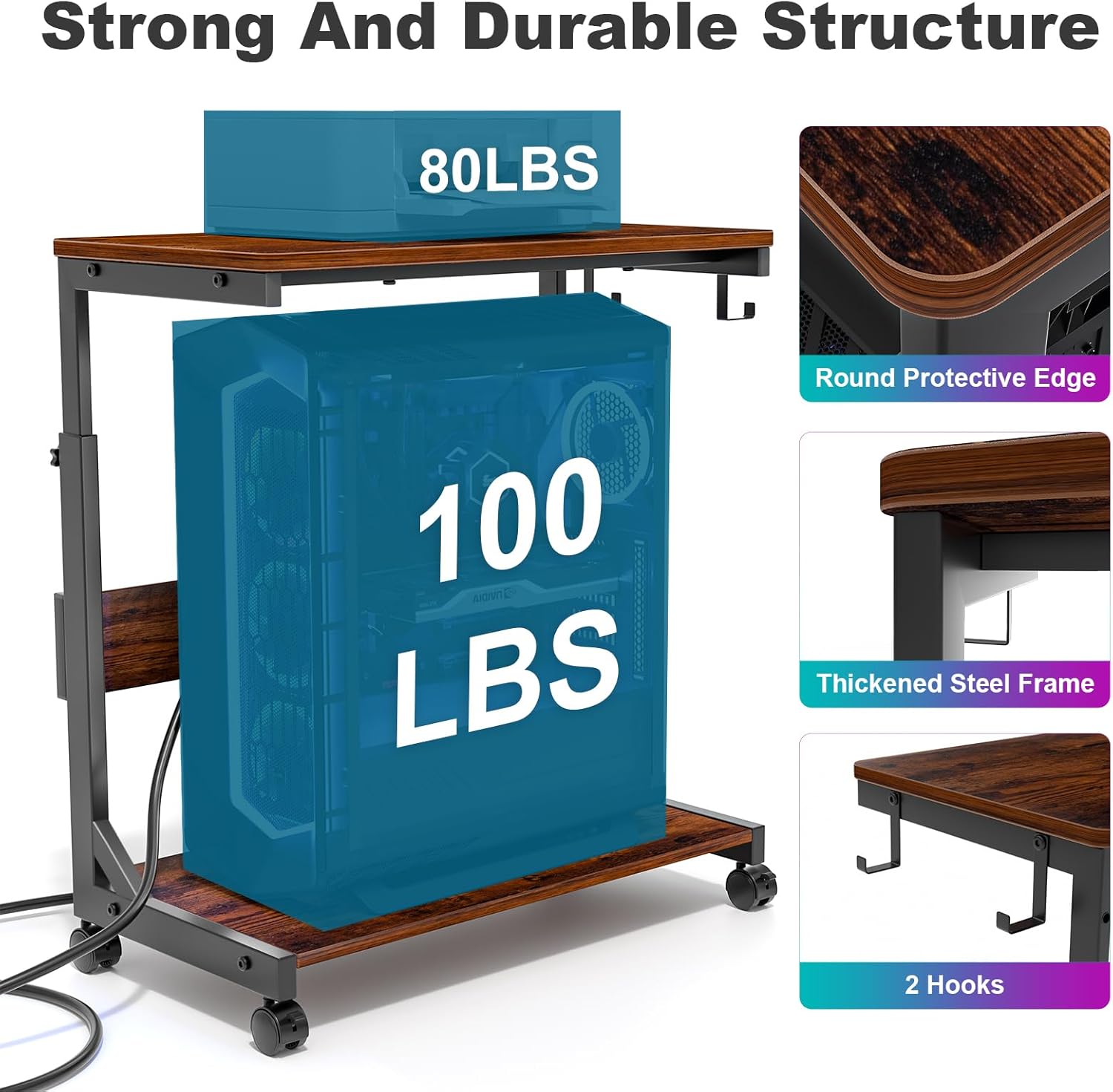 - Strong Construction: The top of this pc stand is made of thickened wood boards, which is anti scratch and rot resistant, and the thickened steel frame, which increases the overall load bearing capacity and stability, with a weighing capacity of up to 80 lbs. this product is stable, does not wobble and is not easily damaged or deformed