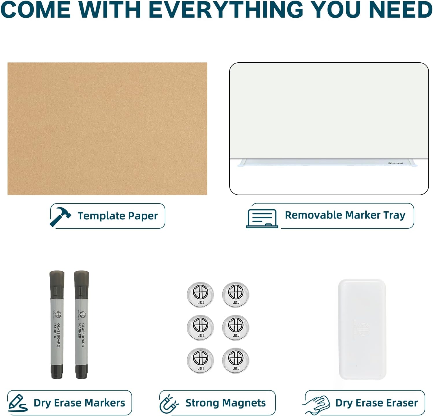 J&J worldwide Glass Dry Erase Board 6' x 4', Glass Whiteboard Magnetic, Large Frameless Glass White Boards for Walls, Includes Magnets, Marker Tray, Eraser for Office, Home, School