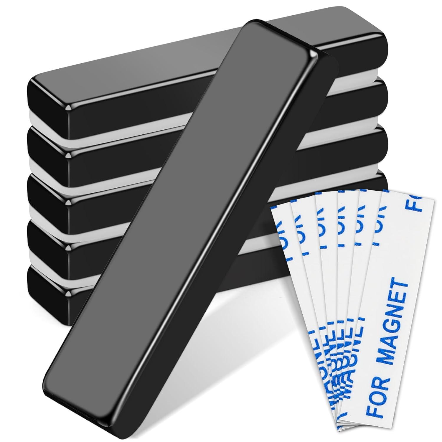 LOVIMAG Powerful Rare Earth Magnets, Refrigerator Magnets with Double-Sided Adhesive, Black Heavy Duty Magnet for Cabinet Doors, Fridge, Classroom, Grill, Garage, Kitchen - 40x10x5 mm,Pack of 6