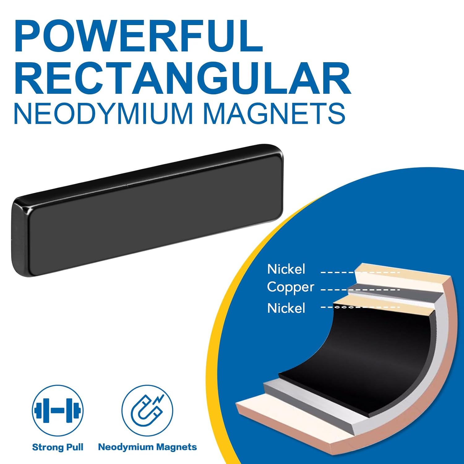 - 【SUPERIOR MAGNETS COATED】Strong Rectangular bar magnet is coated with three layers of NI+CU+NI,High quality permanent magnet materials not only maintain the magnetic force for a long time without easily weakening, but also provide shiny rust protection for the rectangular magnet.