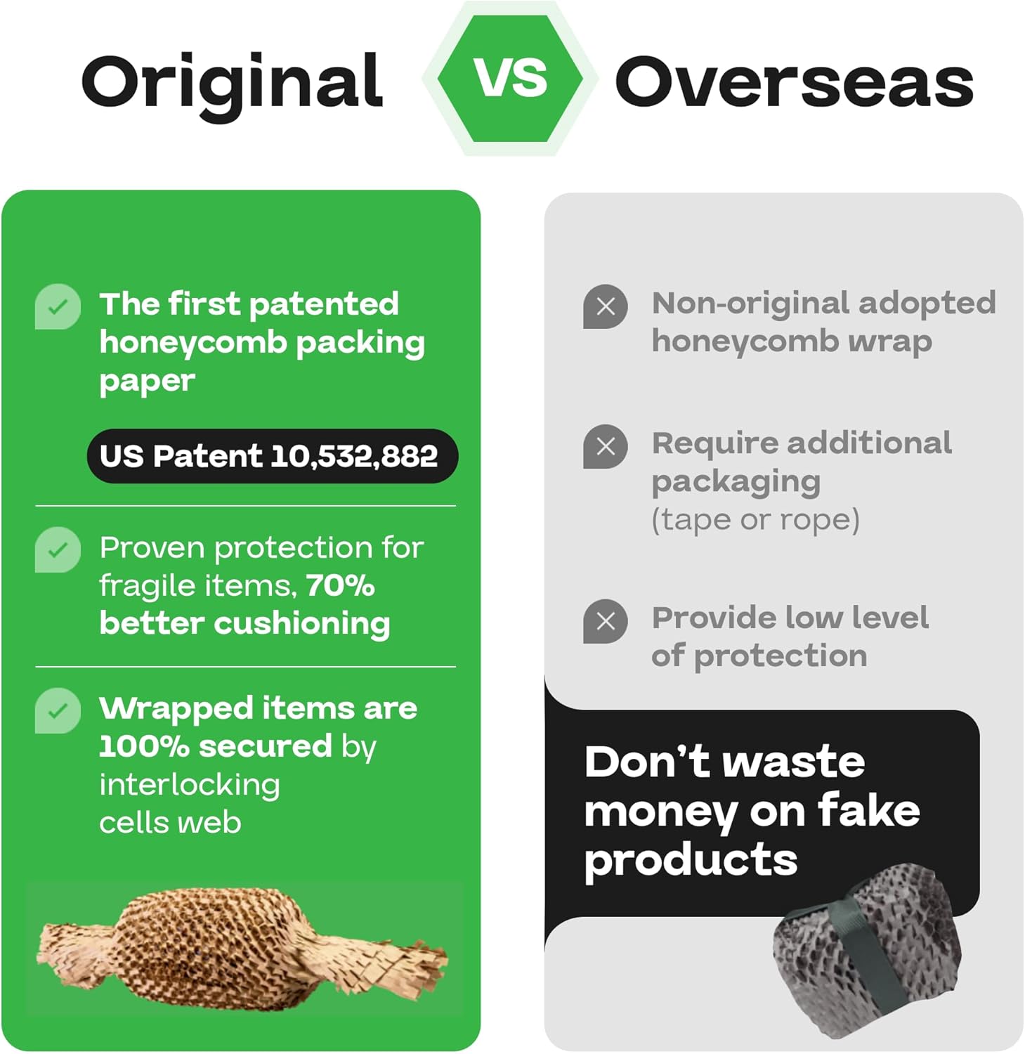 - ECO-CONSCIOUS ALTERNATIVE TO ALL PLASTIC PACKAGING WRAPS: a revolutionary and sustainable alternative bubble wraps, air pillows, and peanuts. HexaFil is the leading choice for efficient void filling, while HexcelWrap is perfect for wrapping fragile items.
