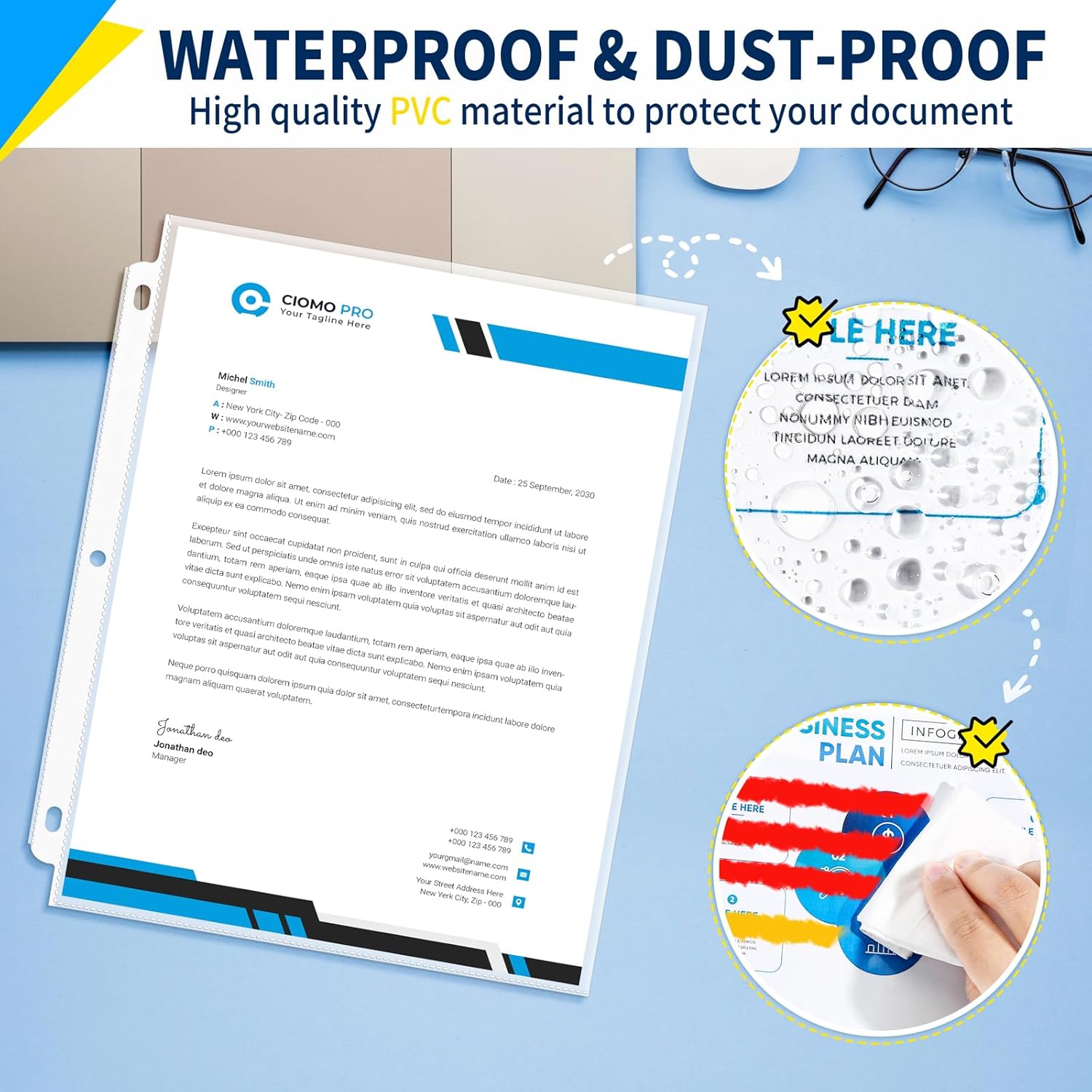 - Standard Hole Punch Design: Standard hole punch design fits into any 3-ring binder, allowing you to organize and store your documents easily