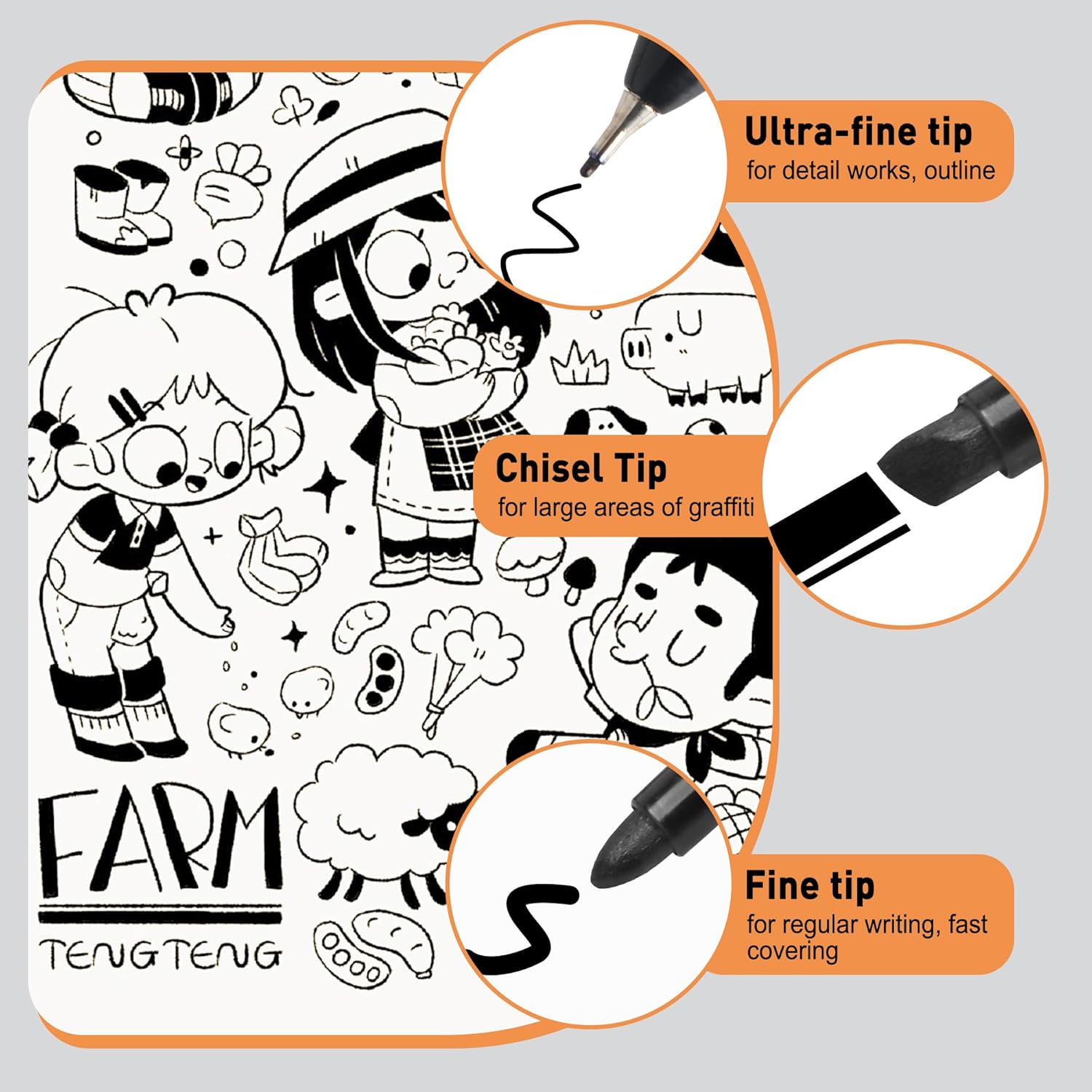 - ✏3 TIPS: 12 Count a set, including 8 fine tip + 2 chisel tip + 2 ultra fine. Chisel tip can quickly color in large areas and take notes, max width is 4mm; Fine point for regular writing and marking, max width is 2mm; Ultra fine for sketch outlining to deliver precise details, max width is 0.5mm.