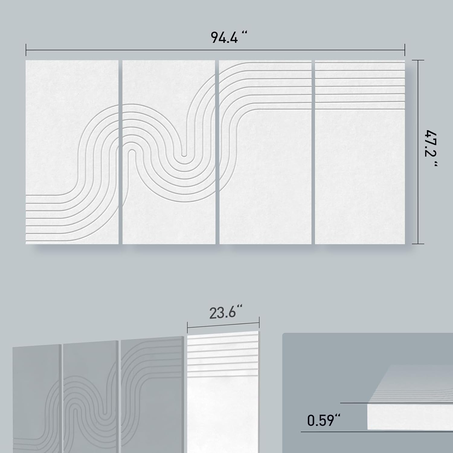 UMIACOUSTICS 4 Pack Decorative Acoustic Panels,Total 94.4” x 47.2” Sound Proof Panels,Decorative Sound Treatment Panel for Home, Office, Recording Studio,White