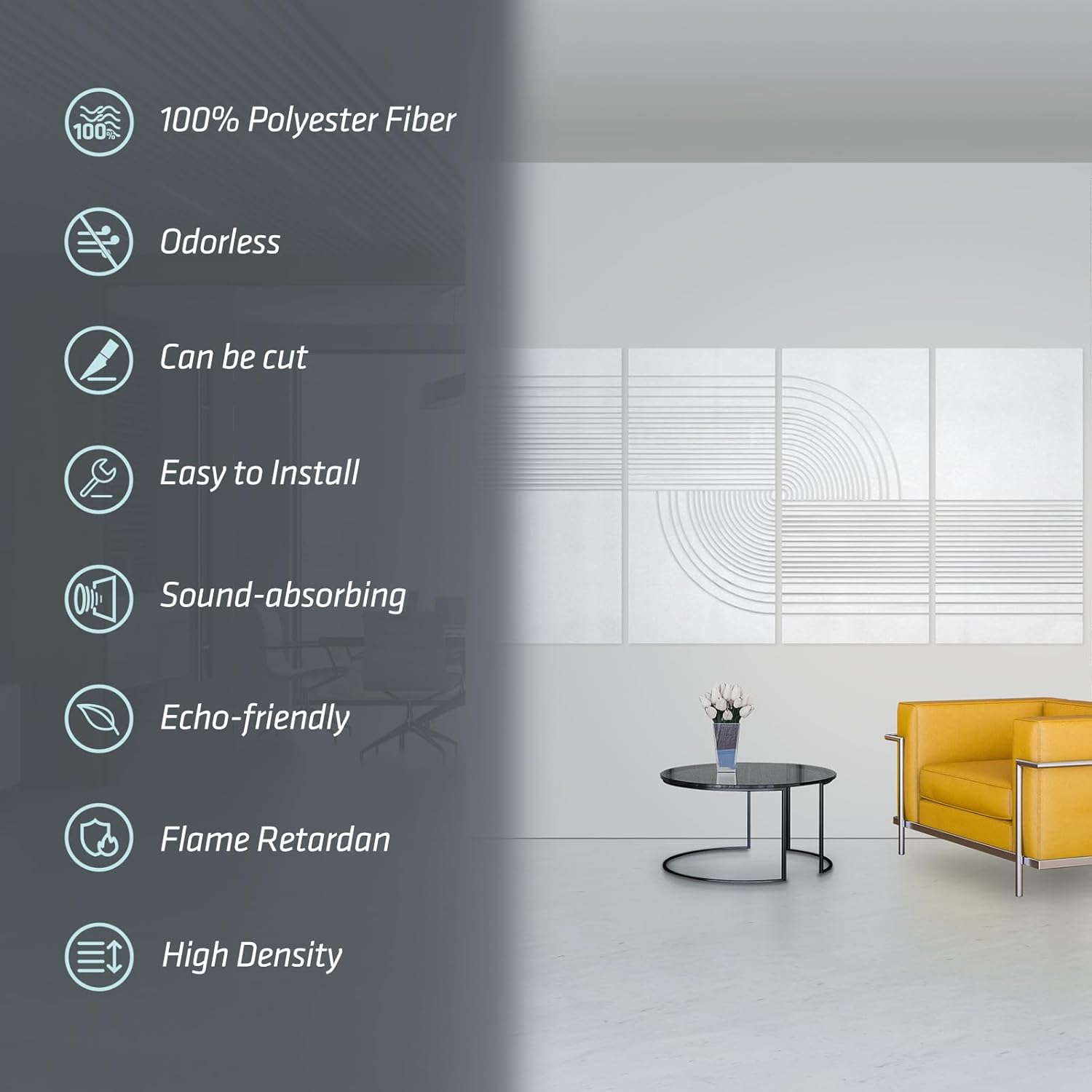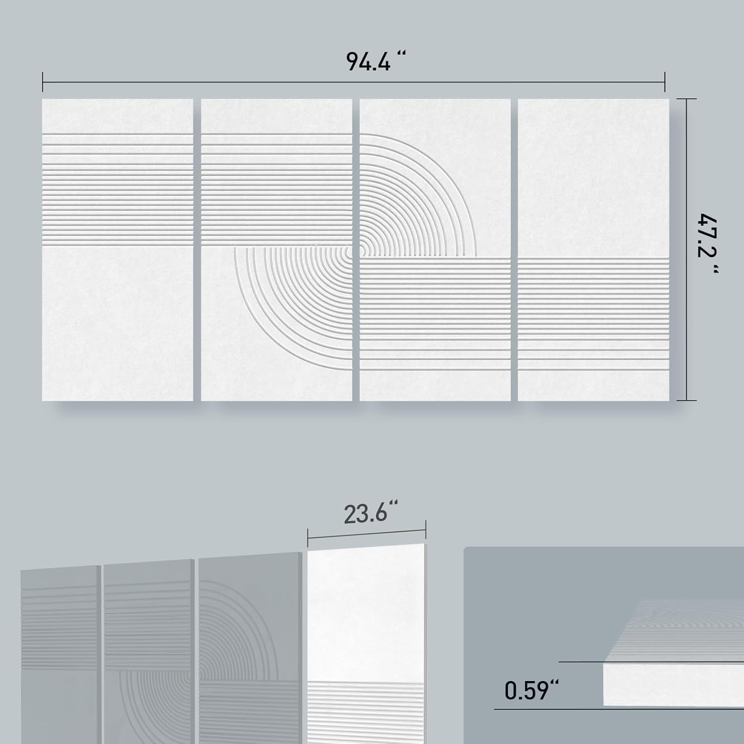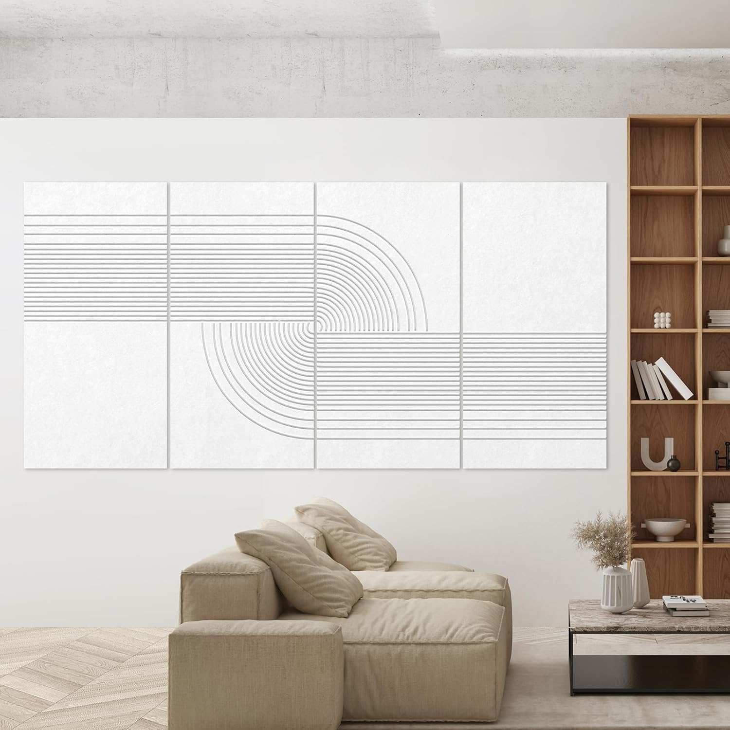 UMIACOUSTICS 4 Pack Art Acoustic Panels,Total 94.4” x 47.2” Sound Absorbing Wall Panels,Decorative Sound Treatment Panel for Home, Office, Recording Studio,White