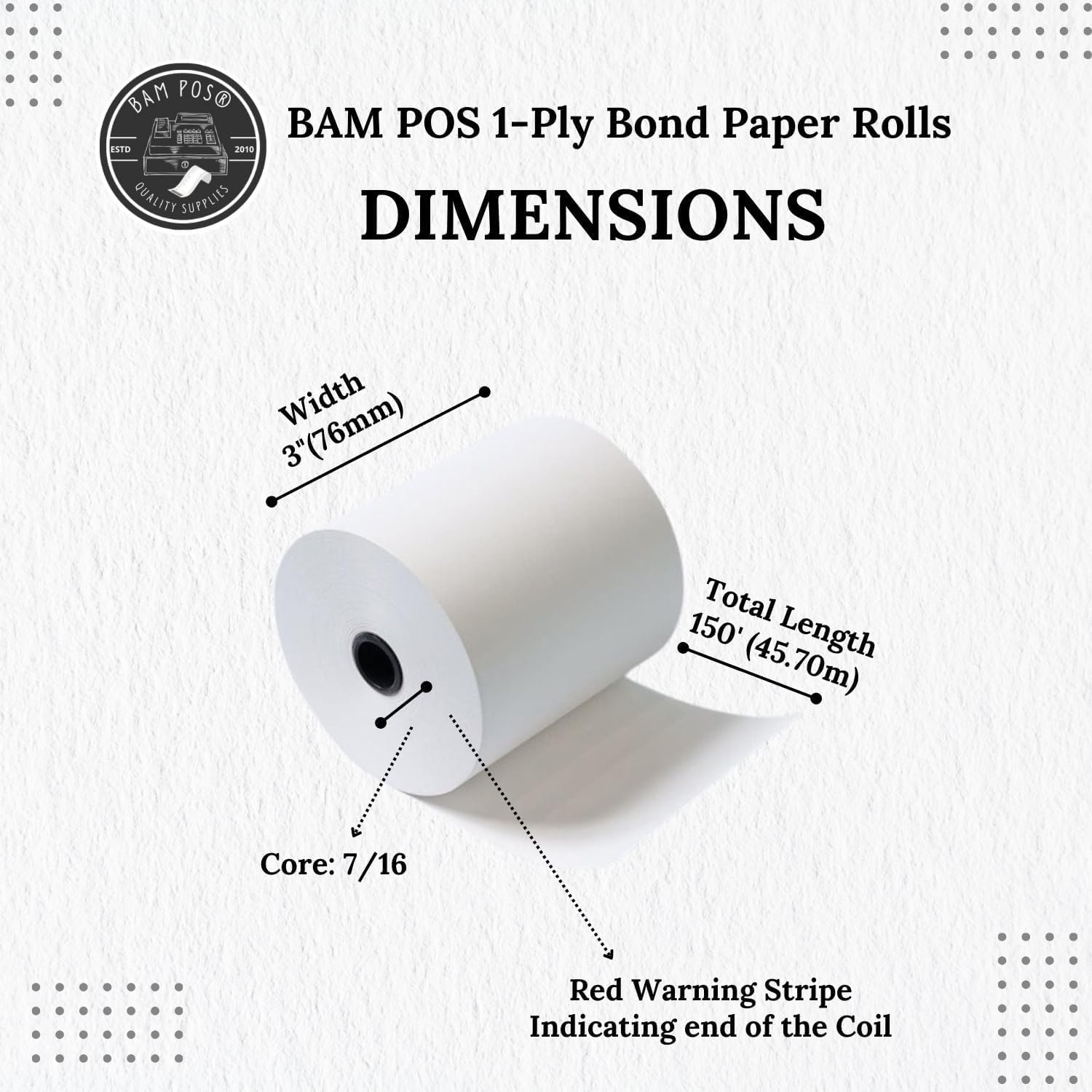 - Superior Quality Paper Rolls: The BAM POS 1 ply Bond Receipt Paper is designed specifically for kitchen printers. It is made from high-quality materials to ensure durability and longevity, allowing for reliable printing of receipts. The consistent output helps maintain smooth operations and reduces the risk of miscommunication or errors caused by unreadable prints