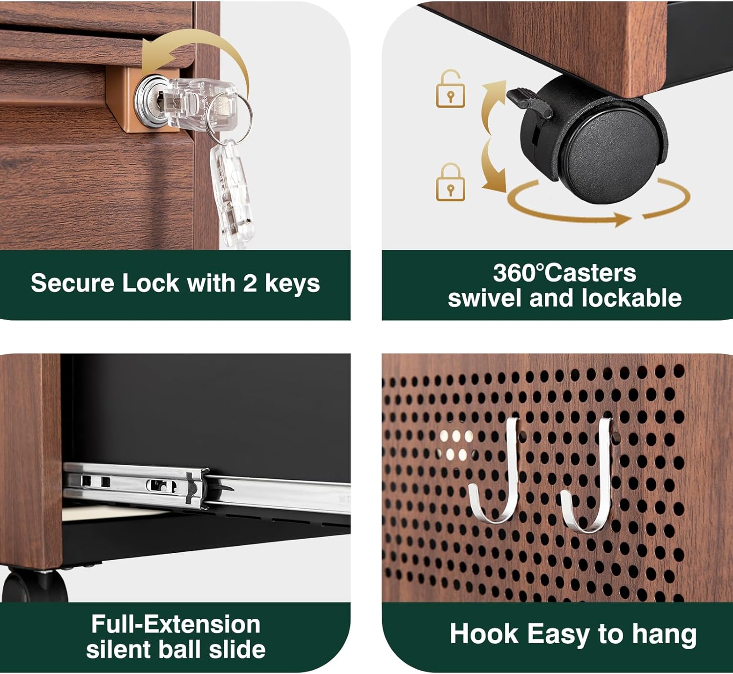 - 【Easy to Move and Assemble 】Cabinet is equiped with four rolling wheels. The left side two casters is lockable casters to keep the product in place and stable. The mobile file cabinet can fix or move around your home office freely. The lateral file cabinet can be assembled quickly and easily by one person and features a convenient and uncomplicated installation procedure with all properly labeled components and installation instruction video and manual.