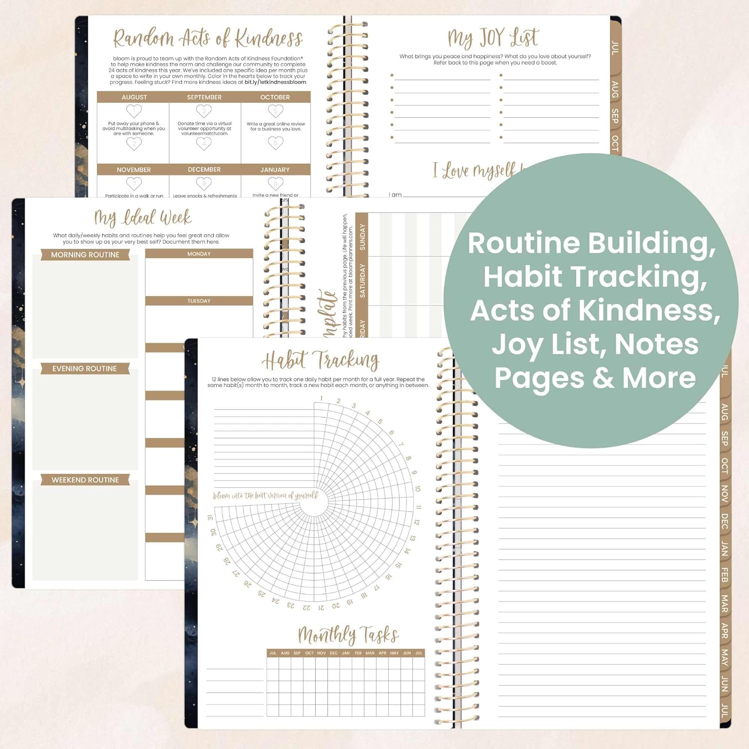 bloom daily planners 2025-2026 Academic Year Daily Planner (July 2025 - July 2026) - A5 Weekly & Monthly Calendar Agenda Organizer Book with Stickers - 5.5" x 8.25" - Midnight Sky