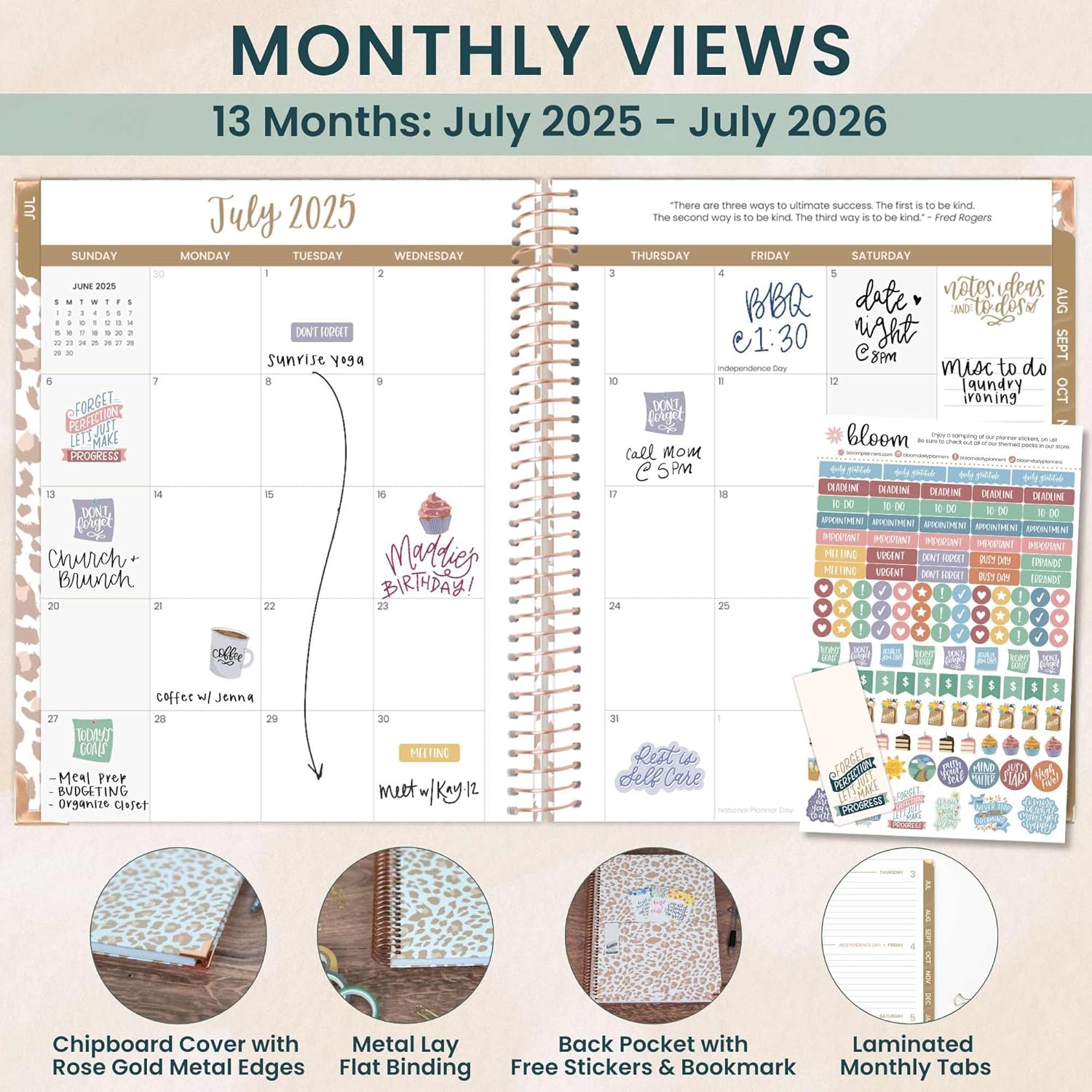 bloom daily planners HARDCOVER 2025-2026 (8.5" x 11") Academic Year Day Planner (July 2025 - July 2026) - Task Goal Organizer - Monthly & Weekly Inspirational Agenda Book - Tan Leopard