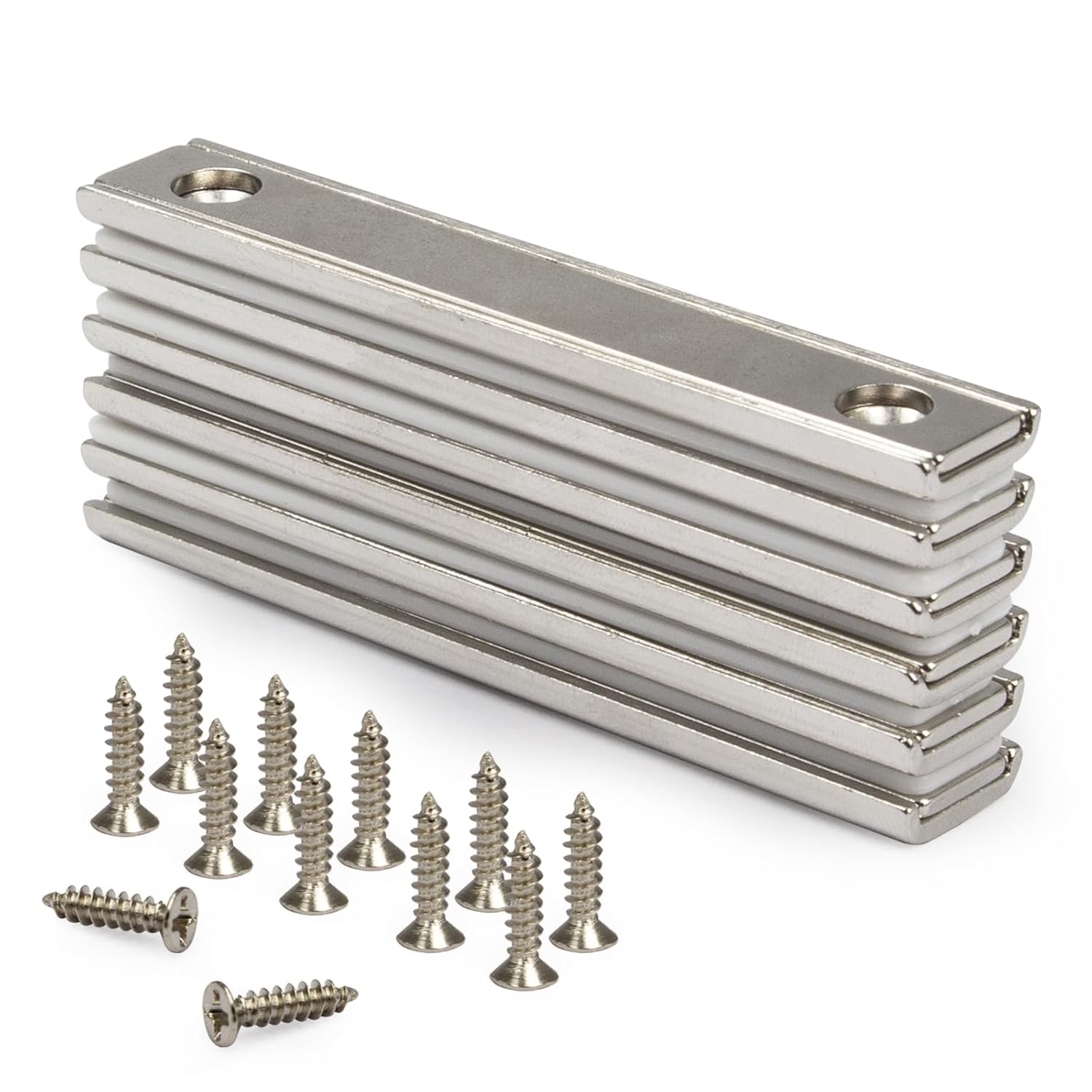 Heavy Duty Rectangular Countersunk Magnets Strips,Rare Earth Cabinet Magnetic Bar,Extra Thin Strong Neodymium Magnets for Wall Mounting (6 Pack, Sliver)