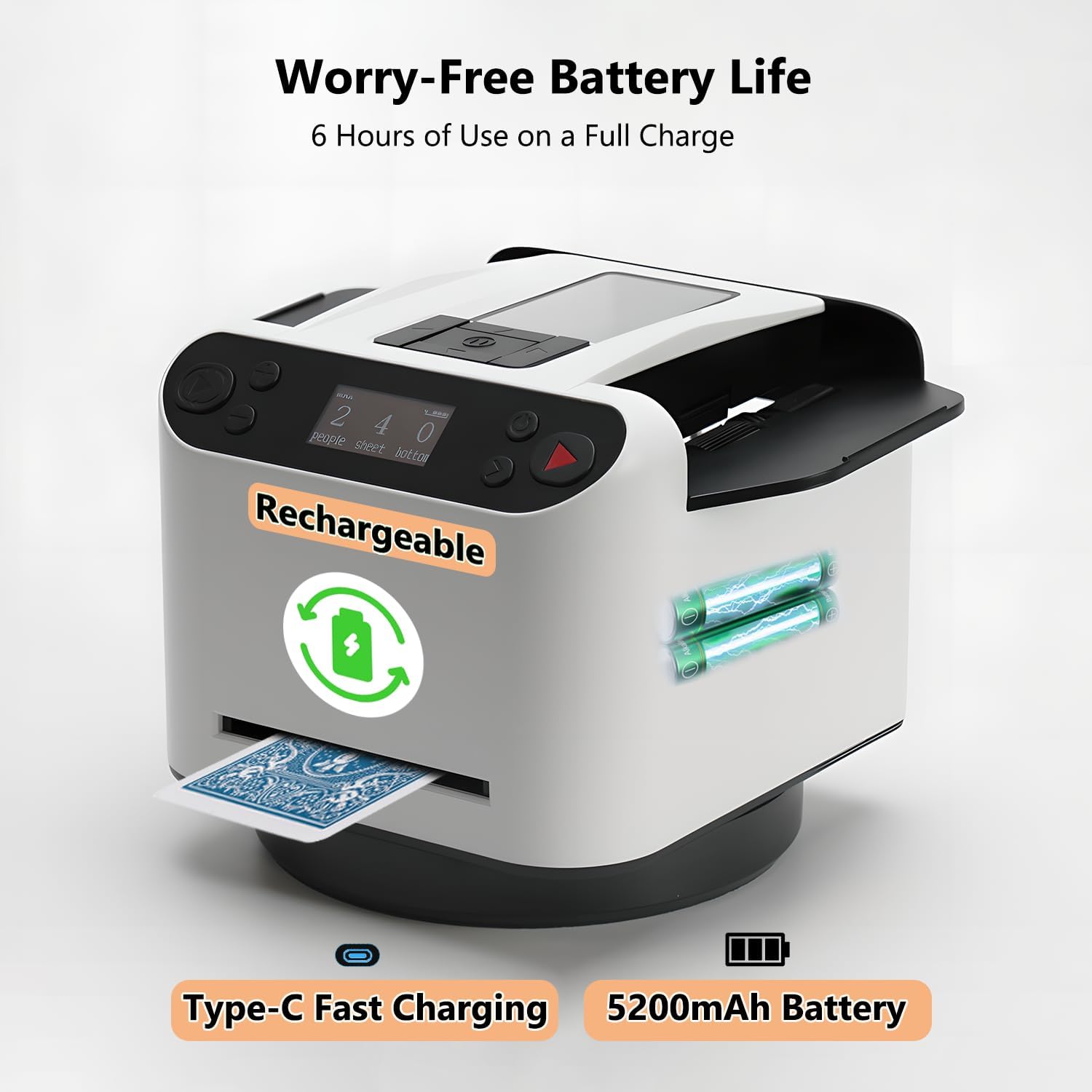 - Wireless Dealing: Comes with 4 wireless calling devices for front, back, left, and right directions. Once paired with the dealer, simply press a button to distribute cards to the desired direction, speeding up the card drawing process and boosting efficiency, saving you valuable game time.