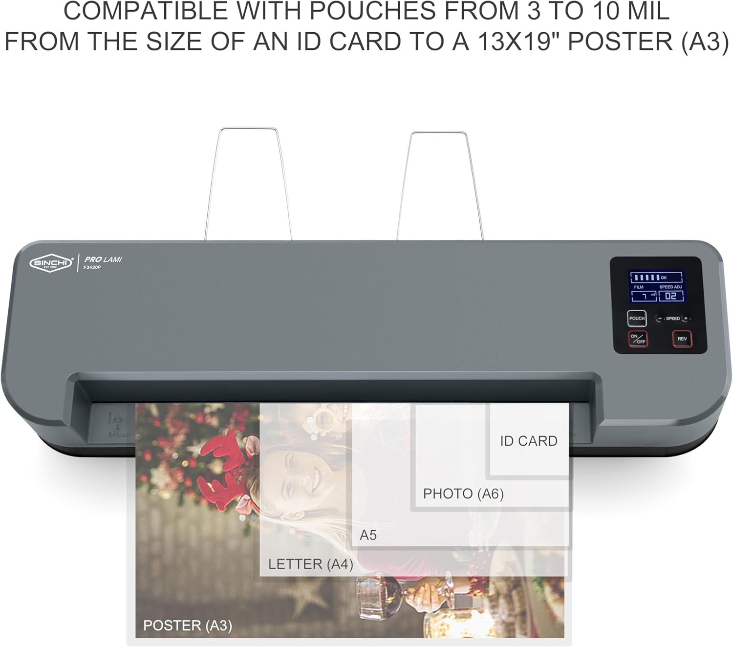 - 【Wide Compatibility】The 13-inch feed width supports all standard pouch sizes—from ID cards to posters. Compatible with pouch thicknesses from 3 to 10 mil per side for versatile lamination needs.