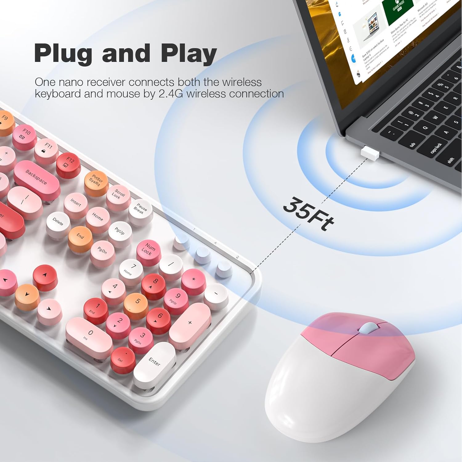 - Plug-and-Play Convenience: Connect both the keyboard and mouse using a single USB receiver without needing any software. Enjoy a reliable wireless connection up to 33 feet (10 meters) with minimal delays or dropouts.