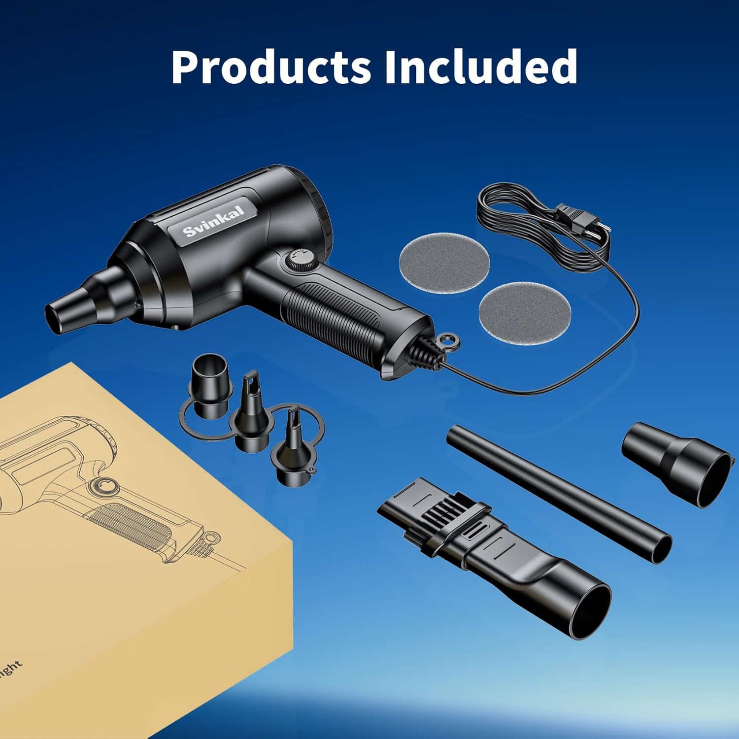 - The air duster has a【gun-shaped design】 that is non-slip and easy to grip. Anti-folding cable protection buckle can effectively protect the cable. Comes with a round hanging loop for easy storage on a hook. Includes two air filters that can be easily removed from the unit for replacement