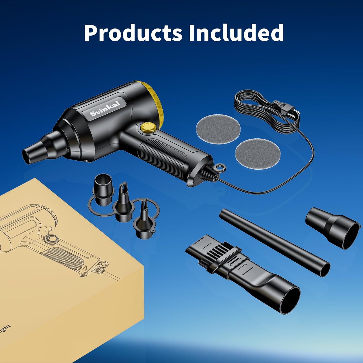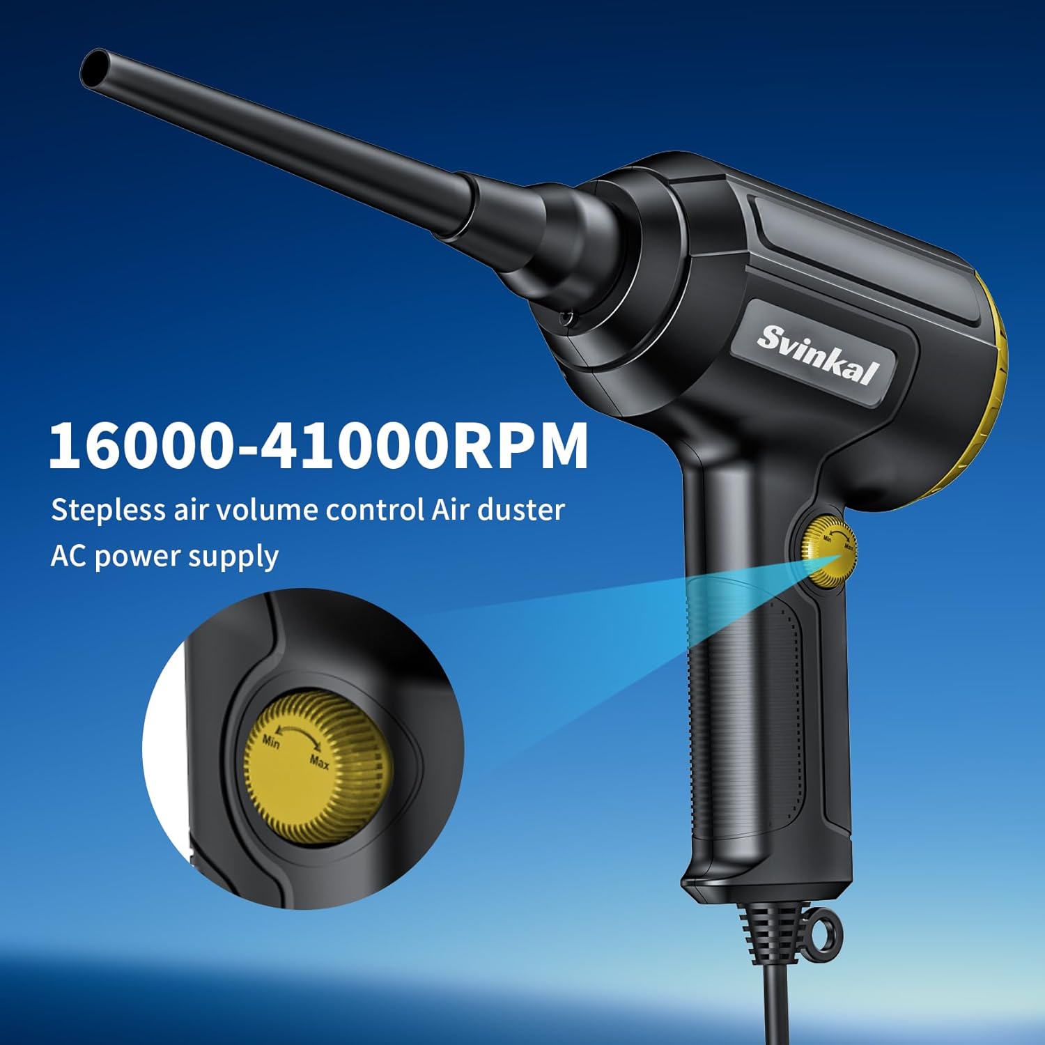 Electric Air Duster, 500W High Power with 40000RPM, Stepless Speed, 6oz Blowing Power, Ideal Canned Air Replacement for Cleaning Keyboards, Electronics, PC, and More (Blue)