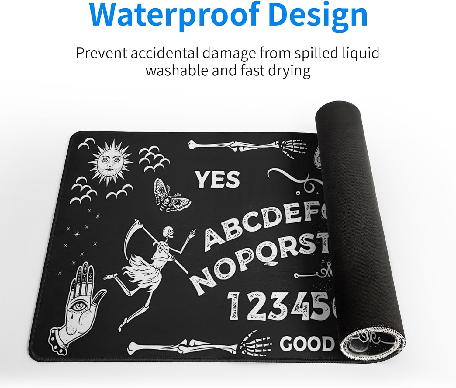 - ♥[Easy To Clean]:This large Mysterious Spirit Goth mouse pad for desk, Spill-proof coating protects your desktop from spilled water, Drinks, Ink and the other liquid spilled liquid or other accidents.Easy to clean, Just wipe with a wet cloth or paper, Does not fade and can be washed and foldable without leaving creases, Easy to carry.