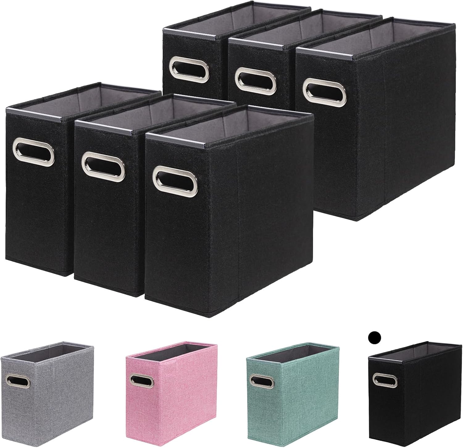 6 Packs Letter Size File Organizer, File Folders Organizer, Fabric Storage Box, Collapsible Paper Organizer with Metal Handle, Smooth PVC Rails, Only Box (Black)