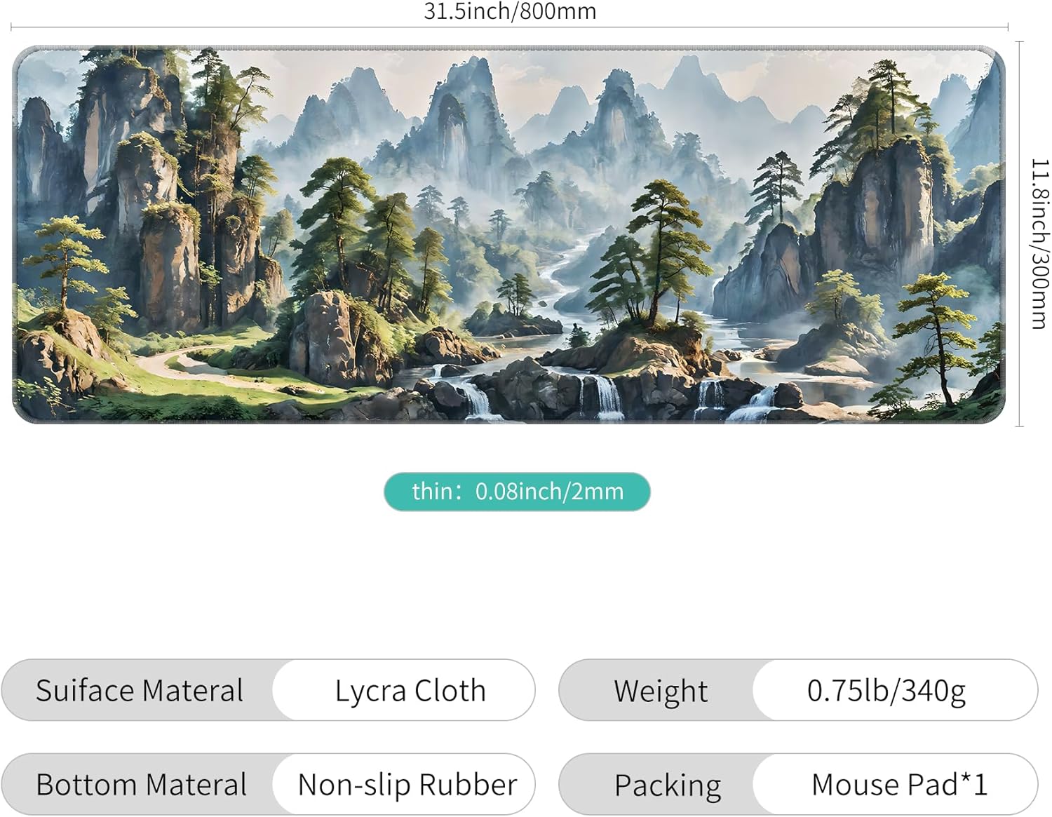 Dynippy Thin Extended Gaming Mouse Pad (31.5 * 11.8 * 0.08 inch) with Stitched Edges Large Mousepad Long XXL Keyboard and Mouse pad Desk Mat for Gaming Office & Home - Landscape Painting